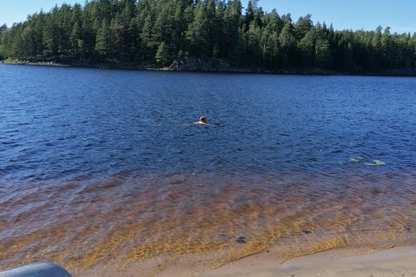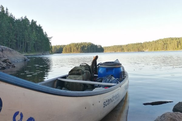 Im August 2022 machten mein Freund und ich uns mit Scandtrack auf den Weg nach Schweden, zu den Nordmarken, um dort einen abenteuerlichen Urlaub zu verbringen. Das dies ein ganz besonderer Urlaub für uns werden sollte, war mir zu Beginn der Reise noch nicht bewusst. Aber starteten wir zunächst mit der Anreise.Für die Anreise nach Schweden haben wir den Bus von Scandtrack mitgebucht. So konnten wir uns einfach von Köln bis ins Outdoor-Camp Höglund (Lennartsfors) mit unserem Reise- und Handgepäck fahren lassen, ohne uns groß Gedanken machen zu müssen oder in irgendeiner Weise Stress zu haben. Nachdem das Gepäck im Bus verstaut und die Gästeliste abgehakt war, fuhr der Bus los. Mit den Fähren sind wir in der Nacht gefahren und konnten ohne Probleme Essen und Trinken kaufen. Also gab es um Mitternacht Spaghetti Bolognese und Currywurst. Nach insgesamt 20 Stunden Busfahrt kam wir morgens am Ziel an und wurden bereits von dem Camp-Team erwartet. Auf der Terrasse erwarteten einen bereits Getränke und ein kleiner Snack zur Begrüßung. Direkt daneben war ein kleiner Infostand mit einer Teammitarbeiterin, die Anreise-Informationen verteilte und für Fragen offen war. Dann ging es direkt mit Sack und Pack weiter Richtung Basislager, wo wir uns an einen kleinen Anreise-Stand angemeldet haben und sofort unsere gebuchten Sachen, wie Futtertonne, Zelt, Werkzeug und Paddel bekommen haben. Nach kurzer Durchsicht auf Vollständigkeit und Intaktheit von Essen, Werkzeug und Zelt haben wir unser Handgepäck in dem dafür vorgesehenen Zelt verstaut und gingen runter zum Strand, wo bereits das ein oder andere Kanu an und ablegte. Dort bekamen wir ein Kanu zugewiesen und eine kurze Einweisung. Nach dem wir das Kanu ordentlich gepackt hatten konnte also das Abenteuer auf dem Wasser beginnen.
