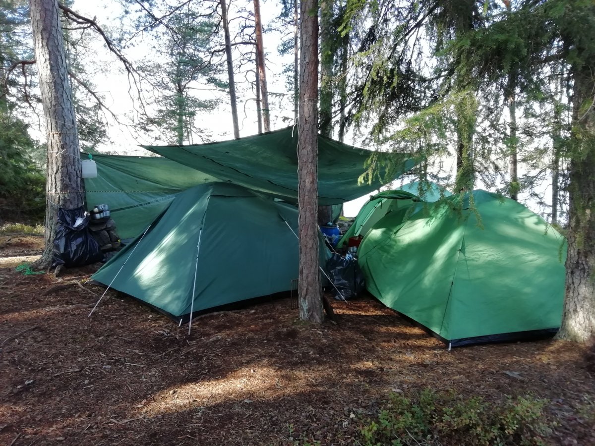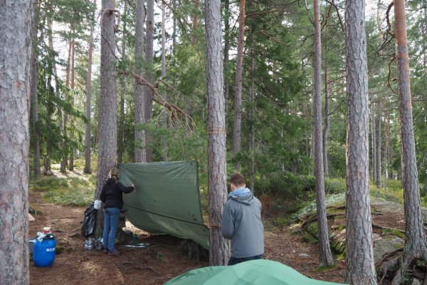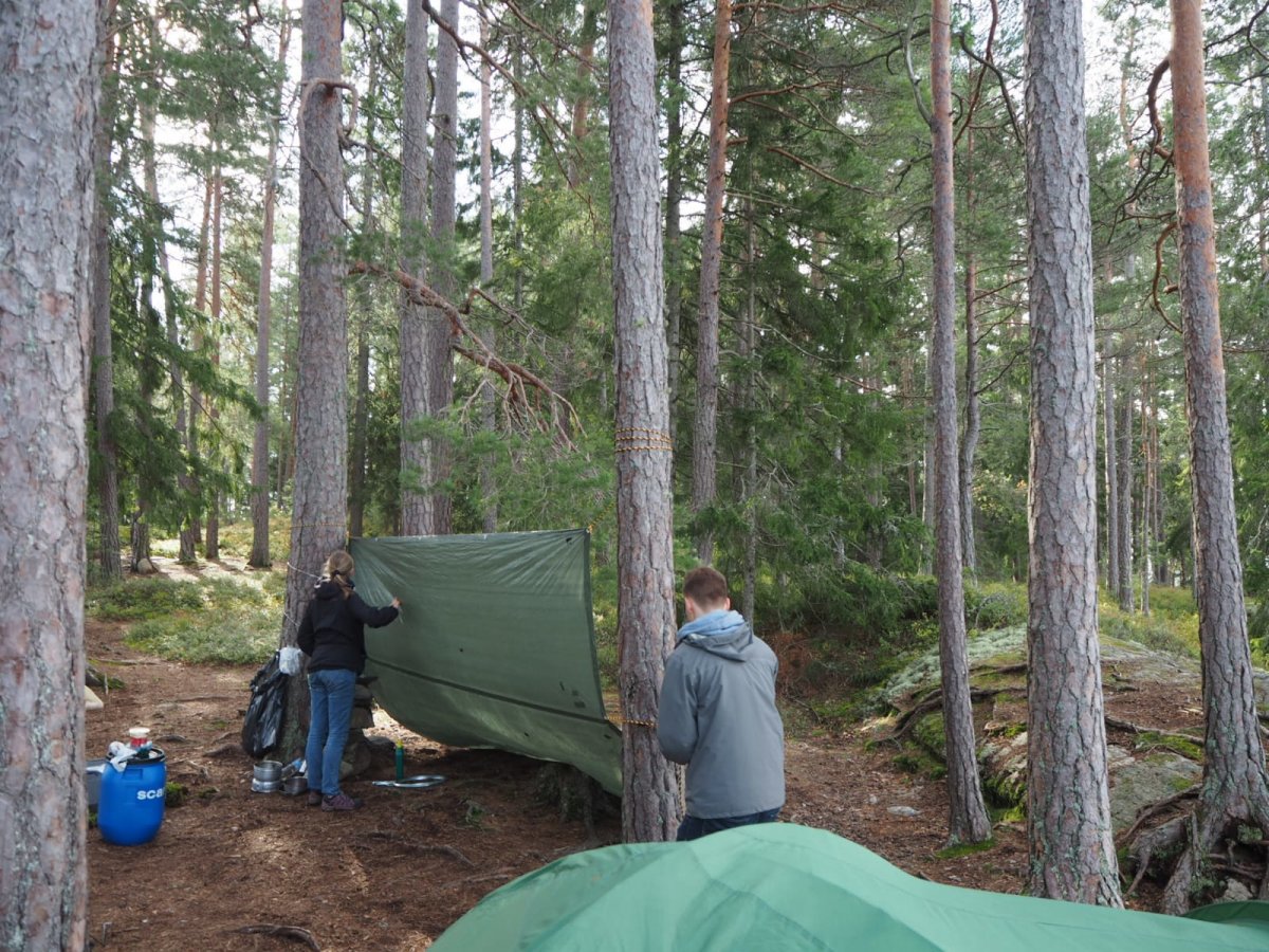 Das Zelt war schnell aufgebaut und mit der gegebenen Plane machten wir unser Lager zudem regensicher.