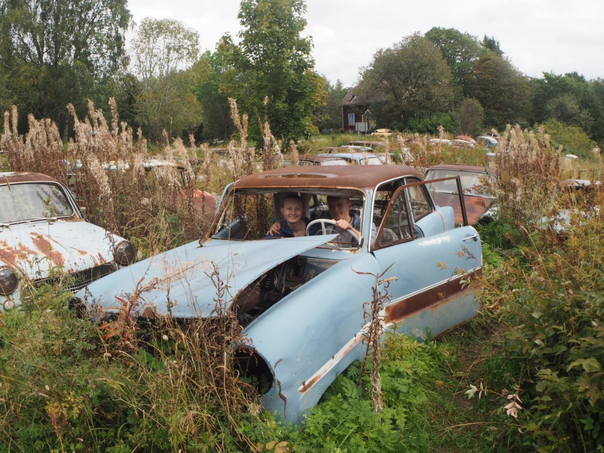 Das schmale Zeitfenster, das uns bis zur Unwetterfront blieb, nutzen wir, um die 800 Meter zum Festland überzusetzen. Hier erwartete uns der Autofriedhof Smaland, eine Gegend, die eher an einen apokalyptischen Zombiefilm erinnert als an das idyllische Schweden.