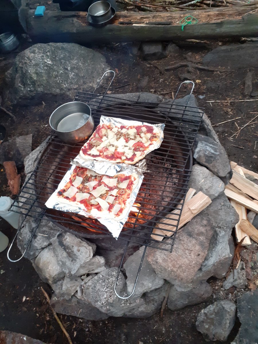 Nachdem wir erfolgreich eine Outdoor-Pizza auf der Feuerstelle gebacken hatten, verschwanden wir mit Einbruch des Regens in unser Zelt.
