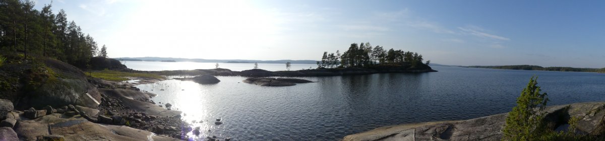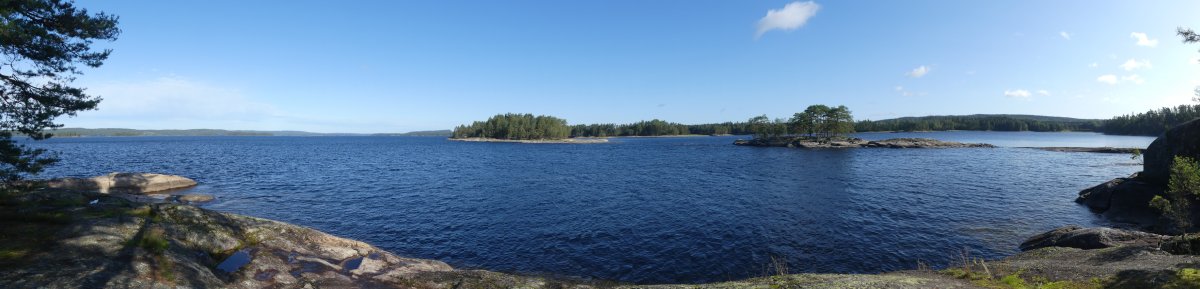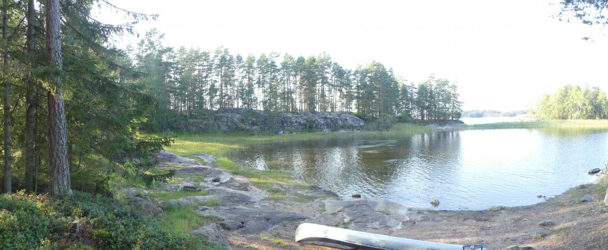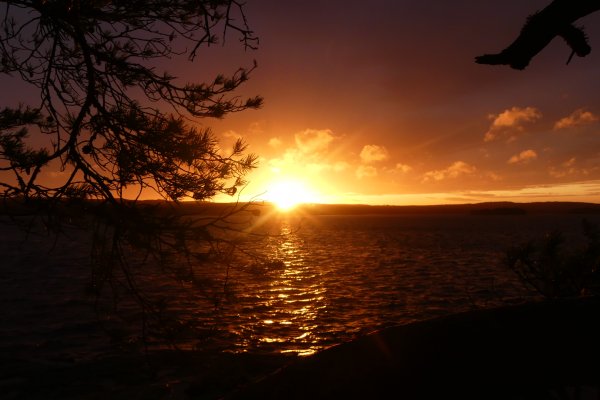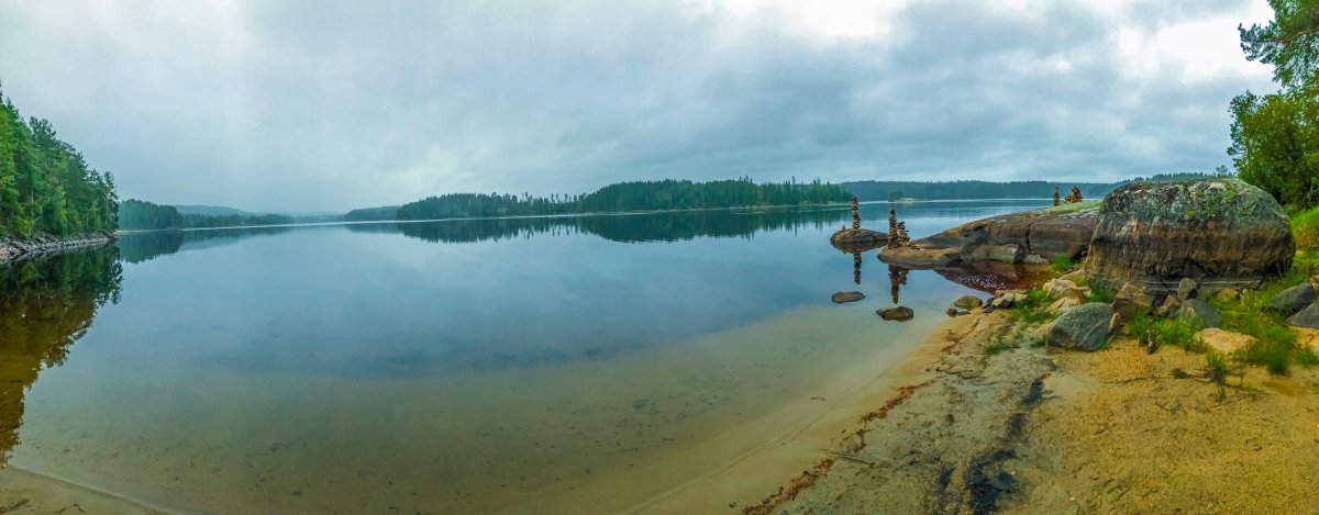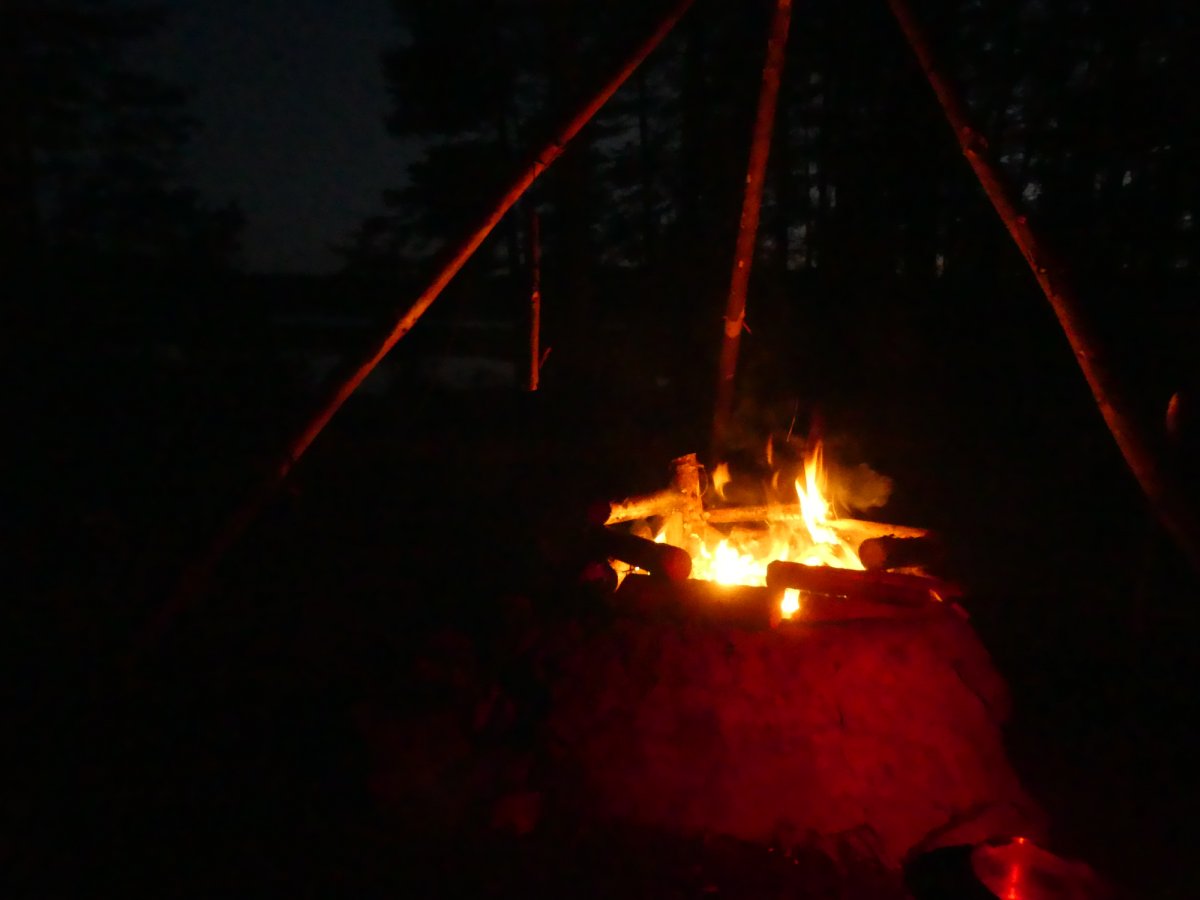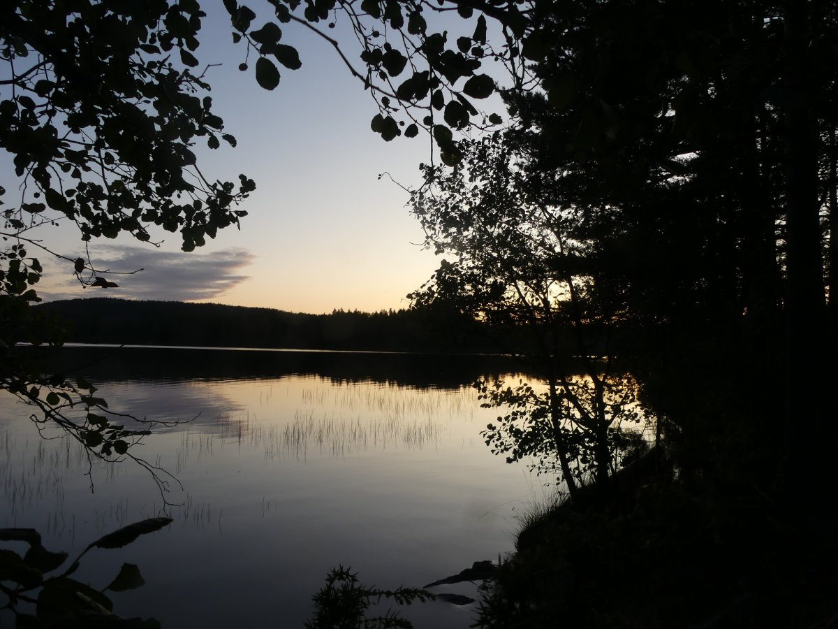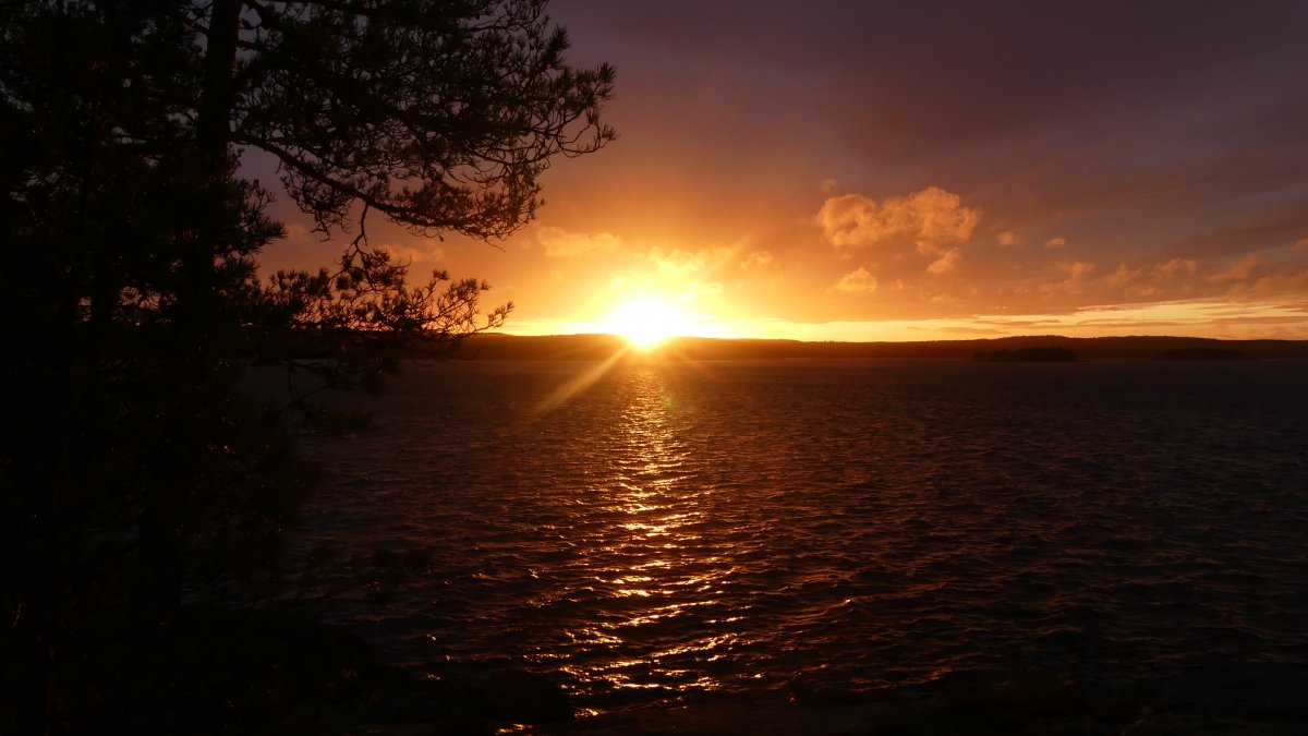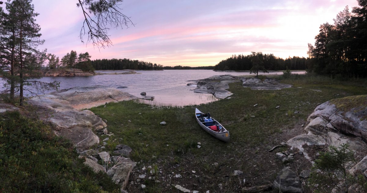 Wie befürchtet sind wir an Tag drei mit regen aufgewacht der, aber glücklicherweise gegen Mittag aufgehört hatte. Als Ziel, hatten wir uns Dano 36-38 genommen. Da wir auf dem Weg dorthin gesehen hatten das dort, aber immer sehr viele Kanus standen, entschieden wir uns dazu bis Dano 16 zu fahren. Am Dano angekommen,haben wir erstmal den Wind genutzt,um unser nass gewordenen Sachen zu trocknen. Nun begann wieder der Lager Aufbau mit Hängematte und Tarp. Am Nachmittag habe ich damit begonnen eine Schale und einen Löffel zu schnitzen. Wir hatten eine kleine Bucht an unserem Dano, in der man perfekt baden konnte. Abends hatten wir einen schönen Sonnenuntergang hinter dem Foxen. Ab dem vierten Tag wurde es windig und die Wellen waren ganz schön groß und wir entscheiden uns deshalb einen Tag länger hier zu bleiben was im Nachhinein genau die richtige Entscheidung war da der Wind im Laufe des Tages immer mehr zugenommen hatte. Somit war genug Zeit für einen entspannten Tag im Lager. Am fünften Tag sind wir dann zum Dano 12 gepaddelt bei blauem Himmel und Sonnenschein. Vom Dano aus hatten wir eine schöne Aussicht auf den Foxen was sich zum Sonnenuntergang hin noch sehr bezahlt gemacht hat. Es folgt der übliche Lager Aufbau der am fünften Tag immer noch Spaß gemacht hat und jeden Tag eine kleine neue Herausforderung war, weil ich es immer so aufbauen wollte das ich einen schönen Blick auf den See hatte und das nicht immer einfach war. Mein Mitreisender hat es sich wieder in Dano bequem gemacht. Am Abend gab es noch Nudeln mit Soße und als Nachspeise Pancakes.
