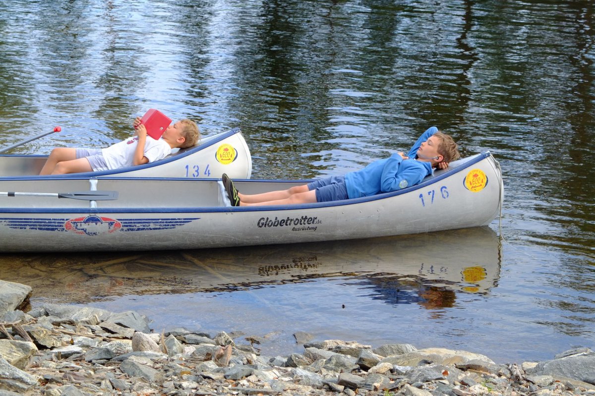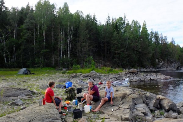 Sicher, wir waren vom Wetter begünstigt, aber wir hatten alle vier Sonnenbrand auf den Knien und wunde Sitzknochen, wir hatten eine Woche alternativlos nur das Zelt als Übernachtungsmöglichkeit, ohne Tisch und Stuhl; eine Woche ohne Supermarkt, die einzigen Zeichen von Zivilisation waren ein paar Sommerhäuser und einige Motorboote. Wir haben wunderschöne, aber auch verletzliche Natur erlebt, dazu unglaubliche Stille. Die schönen Momente überwogen bei weitem alle Anstrengungen und Widrigkeiten – die Kinderträume wurden wahr, und nebenbei auch Kindheitsträume der Eltern!