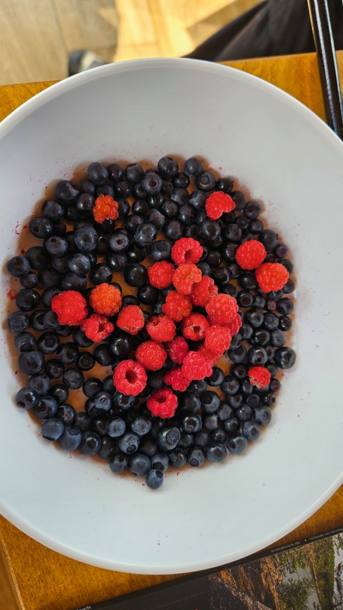 Außerdem haben wir Blaubeeren und Himbeeren gesammelt und Marshmallow´ s gemacht.