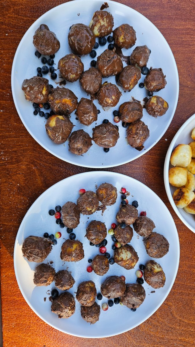Außerdem haben wir am Abend leckere ,, Elchköttel „ aus eurem Kochbuch gebacken und sie mit Beeren verziert.