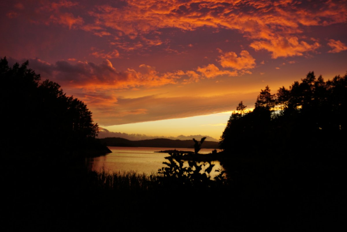 5 Uhr. Der Wecker klingelt. Der Plan bei Sonnenaufgang aufzubrechen gelingt nicht ganz. Es heißt, es wird der schönste Tag der Woche. Uns ist es dafür zu bewölkt. Außerdem ist es windig, starke Wellen halten uns auf. Unser Ziel ist ein DANO im Naturschutzgebiet. Mittlerweile sind wir sieben Stunden unterwegs. Wir haben das DANO immer noch nicht erreicht und verlieren langsam aber sicher die Lust. Das erste Mal heute, machen wir Halt um uns zu orientieren und ein wenig zu stärken. Dabei merken wir: wir sind tatsächlich vorbeigefahren. Wenigstens finden wir hier Holz einer Hasel. Super geeignet zum Schnitzen. Kurze Zeit später erreichen wir das DANO. Jetzt wird der Tag richtig schön. Nachmittags beginnen wir auf unterschiedliche Weisen Bögen zu bauen. Am Abend, verdammt schöner Sonnenuntergang. Wahrscheinlich der Schönste, den wir je erlebt haben. Eine tolle Inspiration für uns Hobbyfotografen.