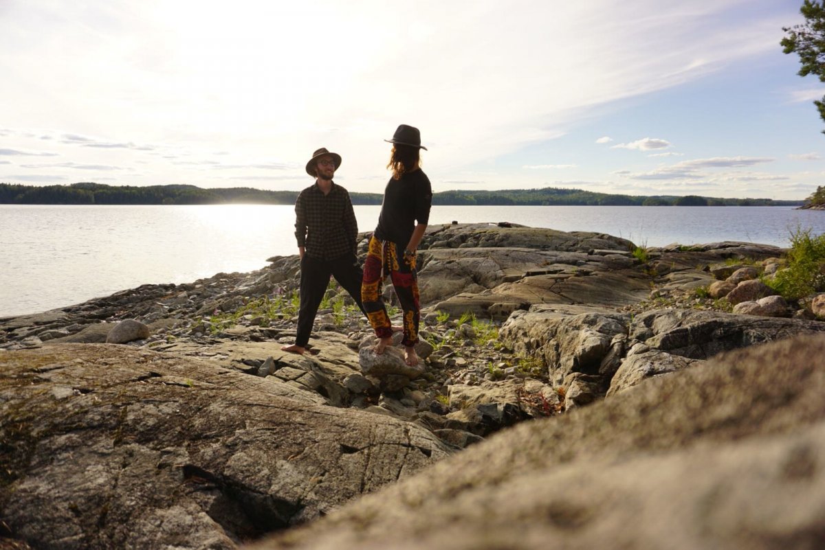 Die Ankunft am nächsten DANO ist auch seltsam. Wir sehen drei Zelte und Kanus. Allerdings keine Menschenseele. Uns ist wie auf einer Geisterinsel. Dennoch legen wir an. Am anderen Ende der Insel. Nach vorzüglichem Essen ist die Stille vorbei. Auf einmal werden wir von einer tanzenden Meute umringt, die uns auf der Insel begrüßt. Schon wieder sind es Berliner. Mehr oder weniger freiwillig, schließen wir uns ihnen an. Was für ein Spektakel: Auf der einen Seite ist da die idyllische Natur der Insel. Auf der anderen Seite wir, die bei malerischem Sonnenuntergang mit Party-Mukke und eigener Tanzchoreographie den Abend zelebrieren. Interessanter Kontrast.