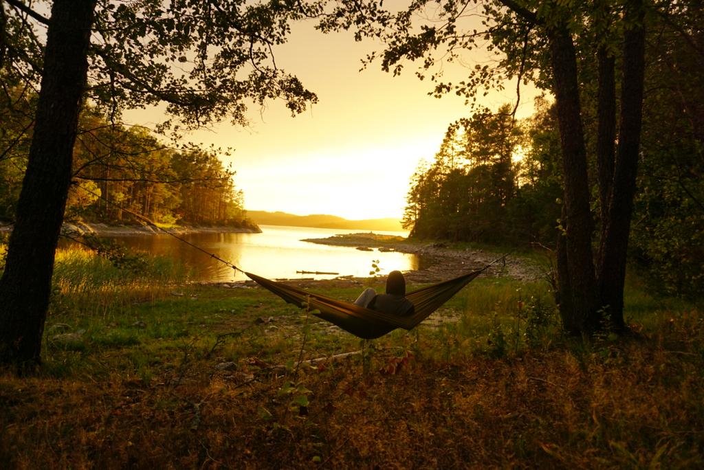 Die Berliner brechen auf. Wir schauen ihnen zu und kochen uns Milchreis. J’s linker Schuh ist nass geworden. Er bewegt sich den ganzen Tag auf einem Bein von Ort zu Ort. Der Weg auf die andere Seite der Insel ist beschwerlich für ihn. Dort erwartet uns ein schönes Plätzchen. Wir spannen unsere Hängematten auf und lassen die Atmosphäre auf uns wirken. R. lässt sich davon zum Zeichnen inspirieren. Als wir abends zum Zelt zurückkehren, ist J’s Schuh trocken. Glück gehabt!