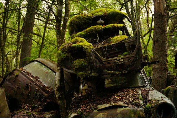 Der Pfad dem wir folgen ist sehr verwildert. Intuitiv wählen wir die richtigen Abzweigungen und stoßen auf einen Schotterweg. Nach einigen 100 Metern sehen wir sie. Die Autos sind uralt, ramponiert und von Moosen überwuchert. Es ist Wahnsinn, wie groß der Friedhof ist. Hier kann man sich wahrlich verlieren. An jeder Ecke einzigartige Fotomotive. Teilweise wächst ein ganzer Baum durch einen Bus. Der Wald hat sich diesen Ort zurückgeholt.