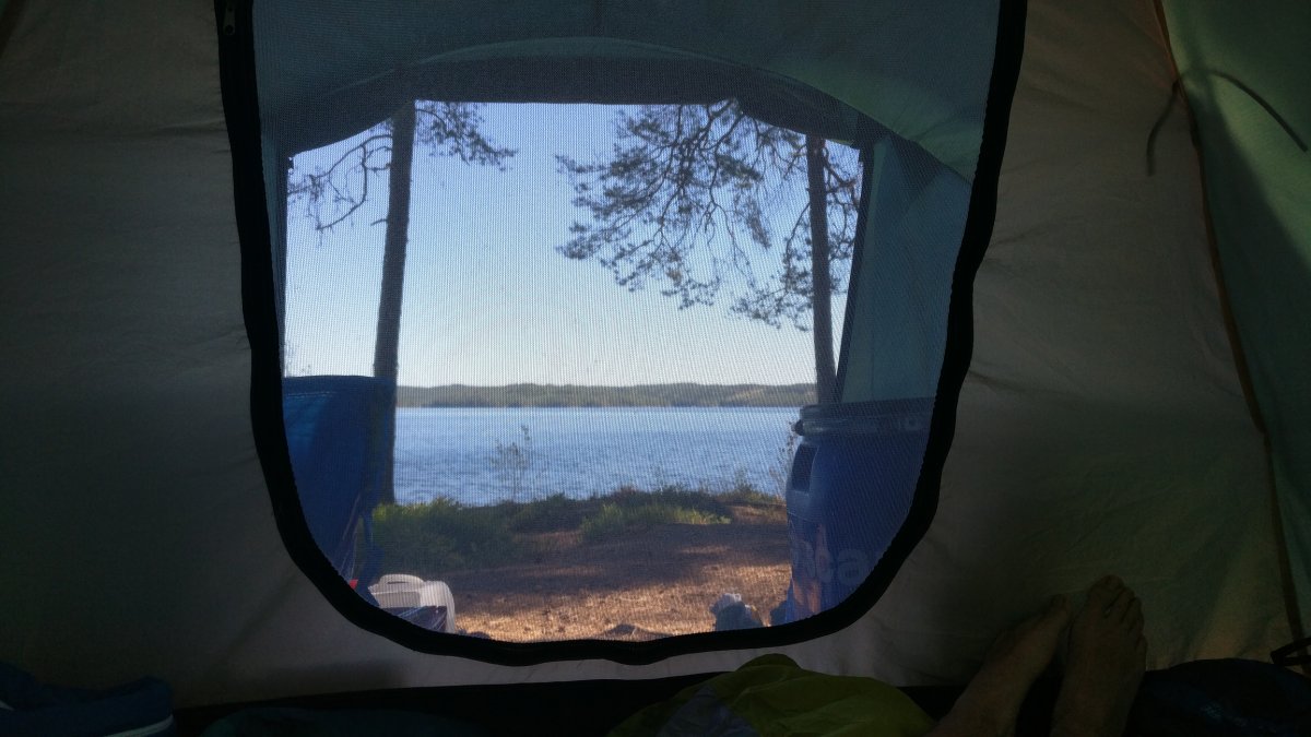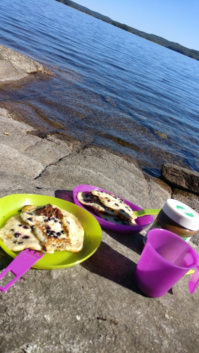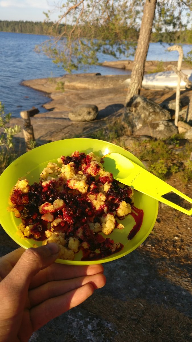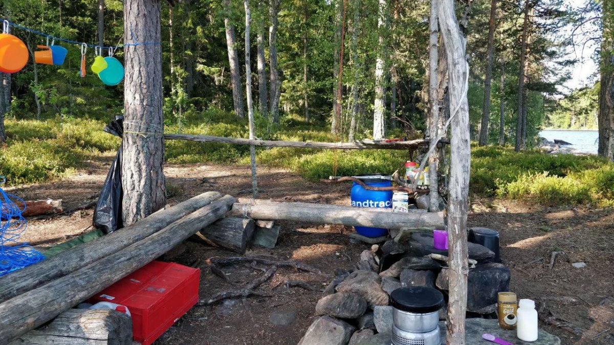So das Abenteuer konnte losgehen, nach viel Fluchen und Schweiß war das Kanu -einigermaßen- unter Kontrolle und wir legten an unseren Hafen an. Auf Grinsbyön 1 angekommen wurde für den restlichen Tag die Insel erkundet, Lager aufgeschlagen und gekocht -Tipp: immer dran denken erst kochen dann Hunger bekommen- Bratkartoffeln mit Speck und Zwiebeln, könnt ja schnell gehen haben wir gedacht