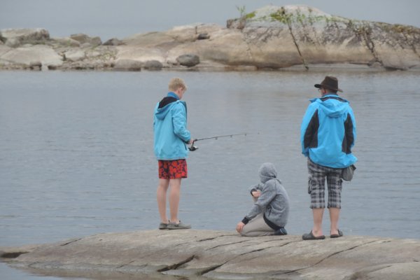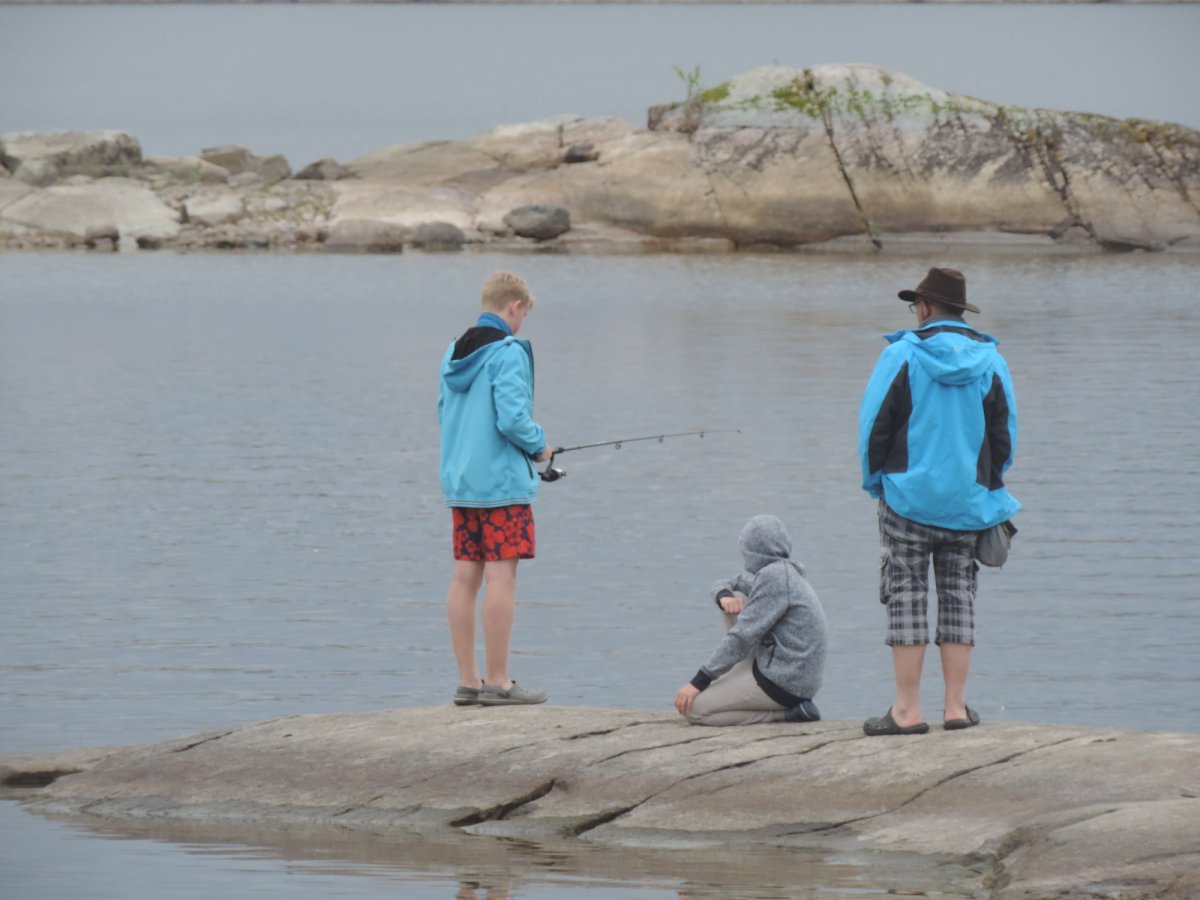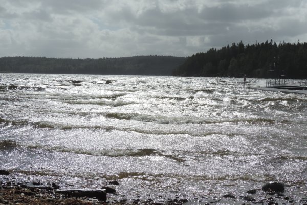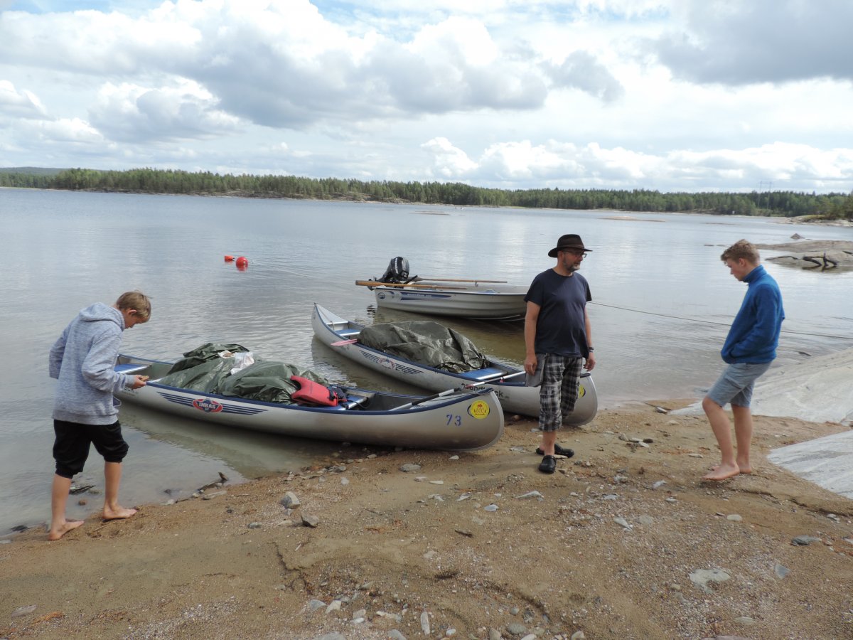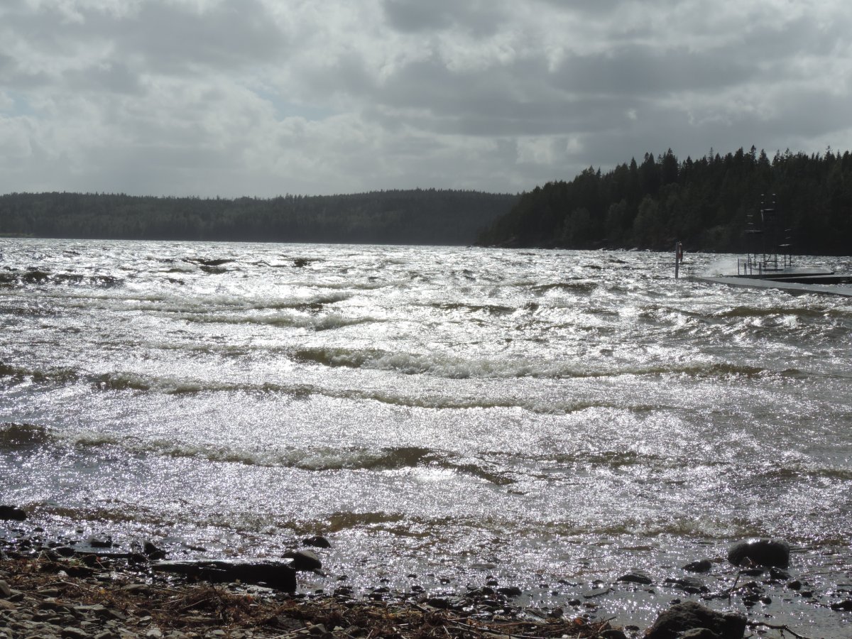 Dann rückte der Abreisetag immer näher. Die Spannung war unglaublich. Nur am Vortag der Abreise wurde diese von unserem schwer pubertierenden Sohn Jonathan (vierzehn) gehemmt, der sich diesem Abenteuer plötzlich lieber verweigern wollte. Wirklich viel gutes Zureden, aber auch einige laute Worte meinerseits, die in der heißen Sommernacht, bei geöffnetem Fenster, das ganze Dorf mitleidig mitfühlen ließen, bewegten ihn dann doch noch die Packliste abzuarbeiten. Dann endlich konnte der Urlaub beginnen. Der Start unserer Kanu-Reise sollte planmäßig am Samstag sein, also beschlossen wir, am Freitag in die Region Lennatsfors zu kommen. Allerdings empfing uns der Fjord dort sehr rau und mit staunenden Blicken sahen wir auf einen in den Fjord-Wellen kämpfenden Bootssteg, der durch die Wucht plötzlich auseinander gerissen wurde.
