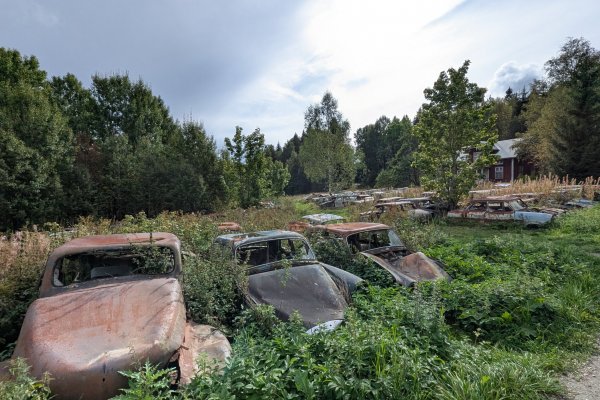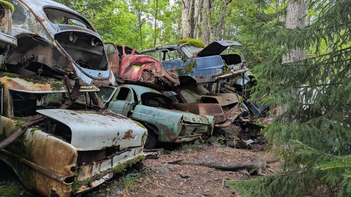 Der Anblick des verlassenen Schrottplatzes mitten im Wald war wirklich beeindruckend und unwirklich. Eine unzählbare Menge alter, rostiger Autos zog sich endlos durch das Dickicht. Manche Ecken wirkten wie die perfekte Kulisse für einen Horrorfilm.