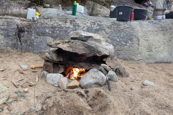 Leider endete mein Versuch, das Schwedenfeuer fertigzustellen, mit einem kurzen Schreck: Eine Sekunde Unachtsamkeit resultierte in einem Schnitt in der Hand. Dank Holgers Erste-Hilfe-Ausrüstung war die Wunde schnell versorgt. Constantin und Mirko übernahmen und stellten das Schwedenfeuer auf ihre eigene Art fertig. Dann waren auch die „Elchköttel“ (Hefeteig mit Nutella-Glasur) fertig, und wir genossen den Leckerbissen. Der Abend endete am Strand, erleuchtet vom glühenden Schwedenfeuer und unter einem klaren Sternenhimmel.