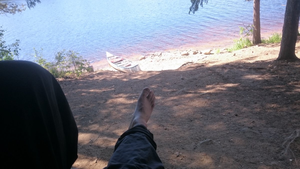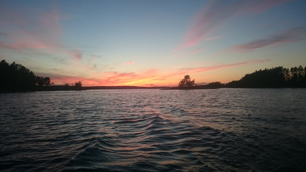 Wieder auf Tour, jedoch mit dem Ziel in der Nähe des Basiscamps zu landen. Natürlich nicht sofort, aber schon mal in die richtige Richtung fahren. Dann, als ich eine gute Bucht gefunden habe, wieder ein paar Norwegern mit Motorboot begegnet und sofort Freundschaft geschlossen. Sie haben mich sogar mit nach Töcksfors und zurück zum Camp mitgenommen, um einen kleinen Einkauf zu tätigen.