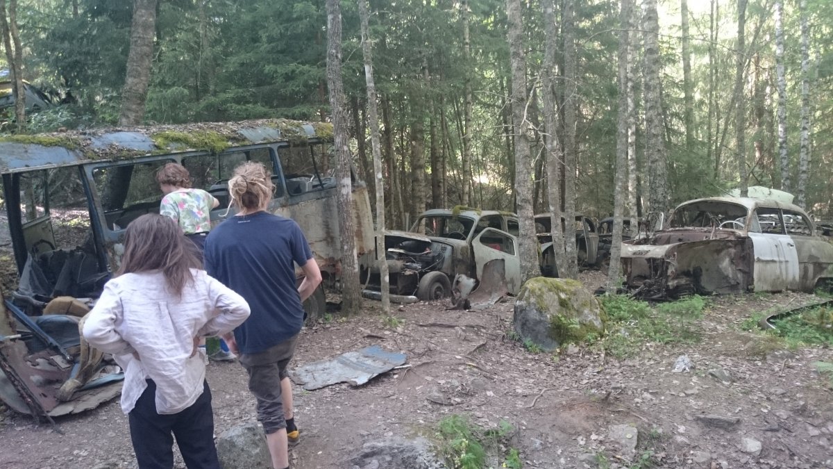 Endlich habe ich mitbekommen wo sich der Autofriedhof befindet. Ab nach Bästnas! Der Friedhof war sehr Imposant und es schien, als sei die Zeit stehengeblieben. Gleichzeitig erkannte man wie sich die Natur alles zurückerobert hat und alles wild bewuchert wurde. Die Rückreise war auch sehr Anspruchsvoll, da die See unruhiger wurde. Jedoch konnte mich mein selbstgebauter Segel sehr weit Tragen. Abends hat sich das Wasser beruhigt und nach dem aufschlagen meines Zeltes bin ich wieder raus um den Sonnenuntergang vom Wasser aus zu beobachten.