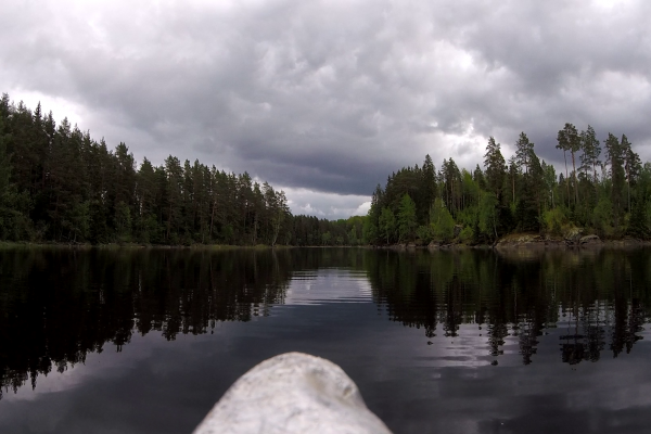 Morgens. 12 Uhr. Ohhh, wenn Ich nochmal mit Helge so etwas wie diese Reise mache, muss Ich mir unbedingt ein Buch mit nehmen. Abends. Wir sind gegen 14 Uhr losgekommen. Der Wind nahm kontinuierlich ab, dafür wurde Rest des Wetters kontinuierlich schlecht. Bei Regen und Windstille lässt es sich aber trotzdem gut fahren! Über 30 km sagt die Karte, mit einer Umtragestelle.