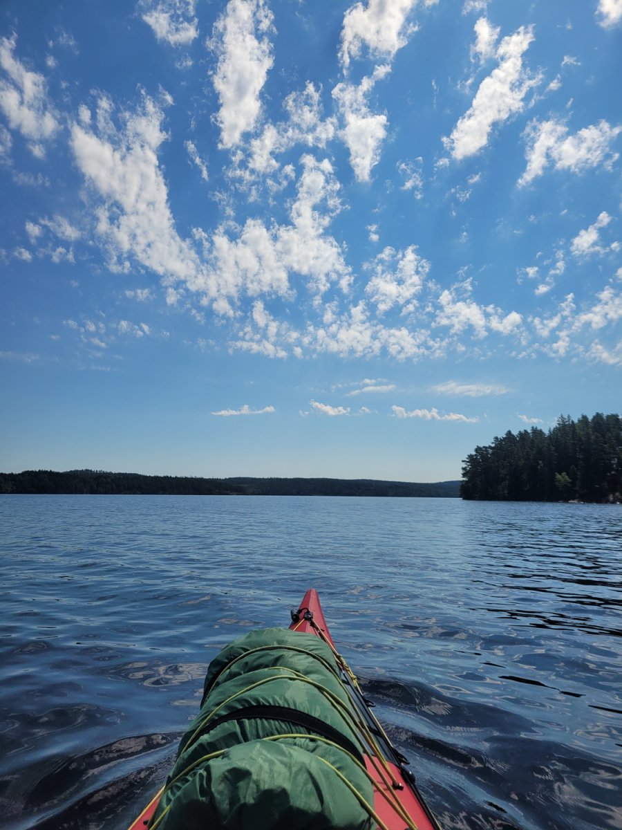Das Wetter meinte es im Juli besonders gut mit mir. Bis auf zwei Tage, an denen es sowohl regnete, als auch gewitterte, war es sehr warm. An einigen Tagen kletterte das Thermometer sogar bis fast auf 30 Grad - perfekt zum Paddeln, Schimmen und Genießen. Natürlich gab es auch windige Abschnitte und Momente, in denen ich ordentlich ins Schwitzen kam, aber genau diese Mischung machte das Erlebnis aus.