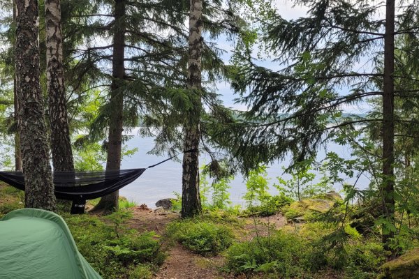 Besonders schön waren auch die Abende. Nach einem langen Tag auf dem Wasser suchte ich mir meist ein kleines Fleckchen am Ufer, baute das Zelt und meine Hängematte auf und sammelte Holz für ein Lagerfeuer. Es dauert meist nicht lange, bis ich andere Reisende traf, die ebenfalls auf Tour waren. Gemeinsam am Feuer zu sitzen, Geschichten auszutauschen und das dunkler werdende Tageslicht über dem See zu beobachten war unbezahlbar. Es entstanden schnell Bekanntschaften, man sah sich hin und wieder mal und trotz der individuellen Routen hatte ich stets das Gefühl, Teil einer Gemeinschaft zu sein.