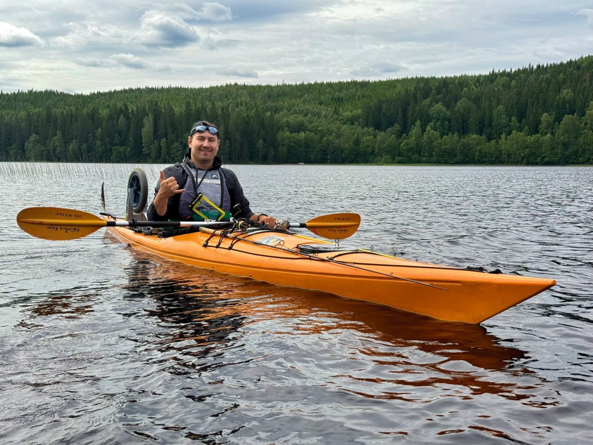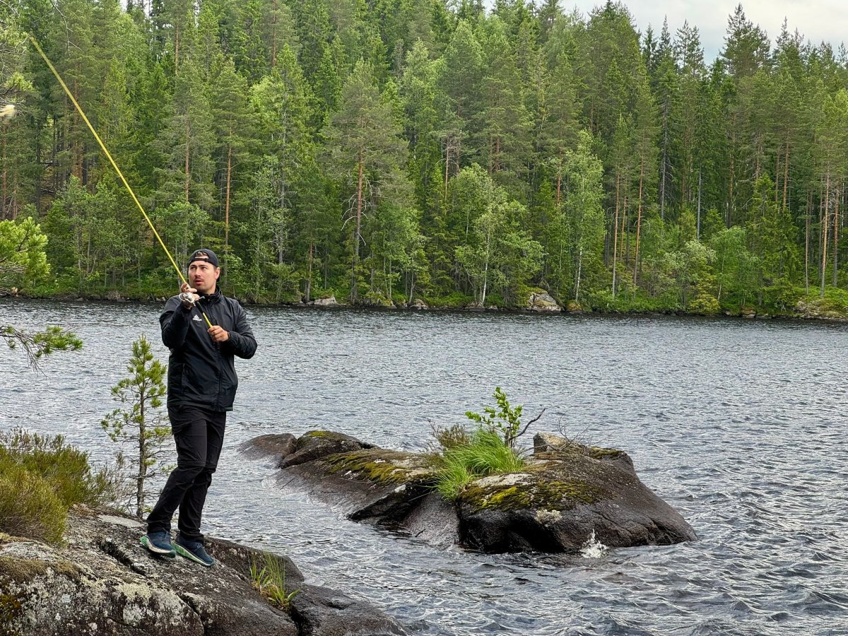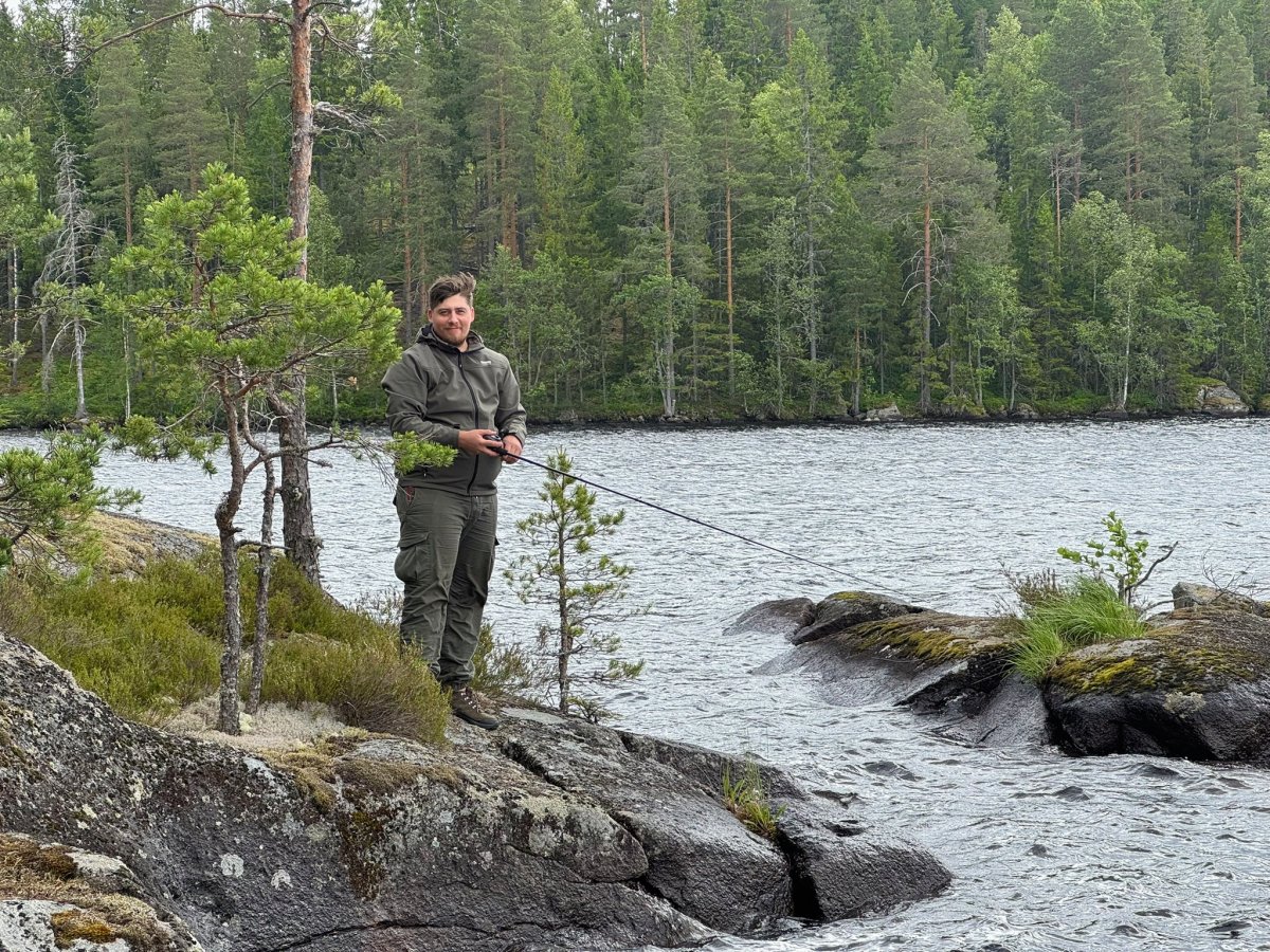 Die ersten Tage waren geprägt vom Einfinden. Wir mussten lernen, wie wir das Kajak beladen, wie wir das Lager aufbauen, wie wir den Alltag draußen organisieren. Am Anfang war das Kajakfahren noch ungewohnt, vom Boot aus zu angeln haben wir uns erst nicht getraut. Das änderte sich mit der Zeit. Das Angeln war für mich eine neue Erfahrung. Wir hatten uns den schwedischen Angelschein besorgt. Ich fand es erstaunlich entspannend. Ich habe die Angel ausgeworfen und die Fische herangezogen, David hat den Rest übernommen. Gefangen haben wir Barsche und Hechte. Der größte Hecht war etwa siebzig Zentimeter lang, der größte Barsch war bei etwa 35 cm. Über dem Lagerfeuer zubereitet schmeckten sie besonders gut.