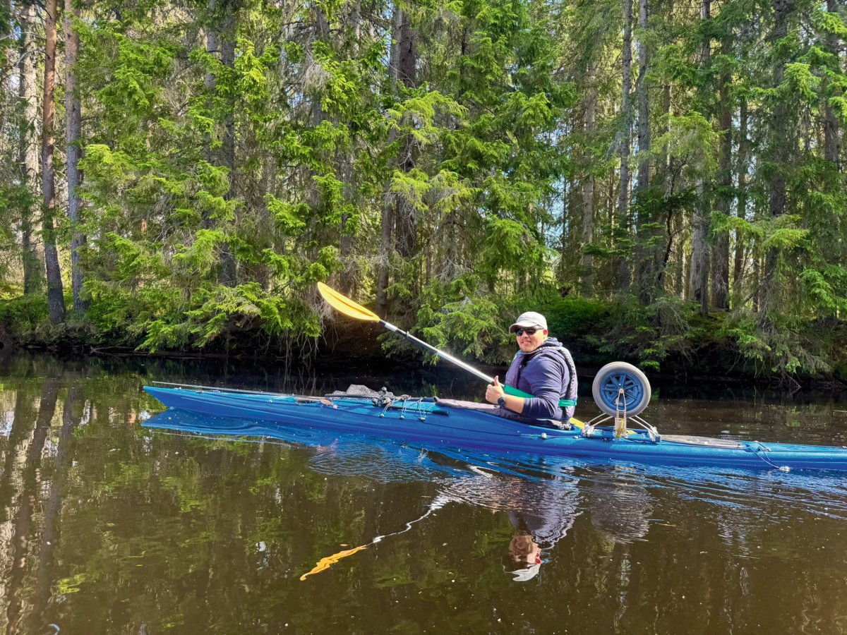 Scandtrack stellte uns vorab eine Packliste zur Verfügung. Die war hilfreich, keine Frage. Trotzdem saßen wir beide davor und überlegten, was wirklich nötig war. Welche Kleidung ist sinnvoll? Was ist überflüssig? Wie packt man so, dass alles ins Kajak passt? Ich bin von Heidelberg gestartet, habe David in Hamburg abgeholt, und von dort sind wir zusammen nach Schweden gefahren. Wir wollten es einfach halten, deshalb kein Flug und keine Fähre.