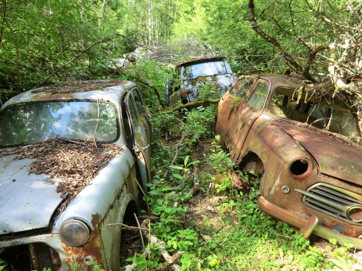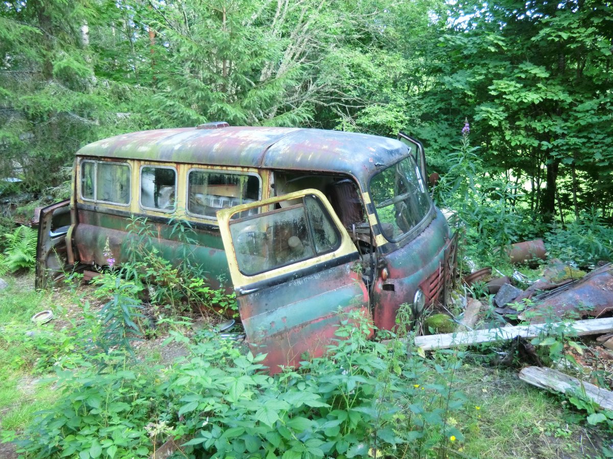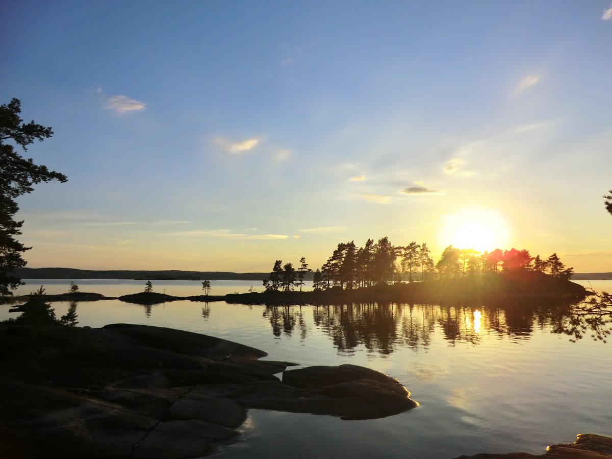 Jeden Tag konnten wir uns im See abkühlen, unsere Runden schwimmen und in der Sonne liegen, einfach mal nix tun und nicht auf die Uhr schauen. Das Wasser war fast die ganze Woche spiegelglatt, sodass wir im Laufe der Woche wie wir wollten zickzack auf dem Foxen fahren konnten, ohne auf Wind und Wellen achten zu müssen. So waren wir zum Beispiel in Norwegen, auf der Bärön-Insel, auf dem Stora Le und haben dazwischen noch einige andere Fleckchen erkundet. Es ist einfach traumhaft in Ruhe mitten über den See zu paddeln, einfach mal auf der Stelle zu treiben sowie die Sonne und die Freiheit zu genießen. Auch die Sonnenuntergänge waren jeden Abend wunderschön und einzigartig. Besonders wenn man quer über den See auf einen Sonnenuntergang schaut und sich die Farben des Himmels im Wasser spiegeln. Mein kleines persönliches Highlight waren aber der Sonnenaufgang bei nebelbedecktem See und absoluter Stille und das Übernachten in der Hängematte. Diesmal habe ich es durchgezogen und eine Nacht alleine außerhalb des Zelts verbracht und so gut geschlafen, dass ich den Sonnenaufgang leider verpasst habe. Ein weiteres kleines Highlight war der Autofriedhof bei Båstnäs. Nachdem wir beim letzten Urlaub am Rückreisetag davon erfahren hatten, haben wir dieses Fleckchen dieses mal am vorletzten Tag gefunden. Zur Abwechslung legt man hier ein paar hundert Meter zu Fuß zurück und kann zwischen von der Natur eroberten Autos durch den Wald klettern.