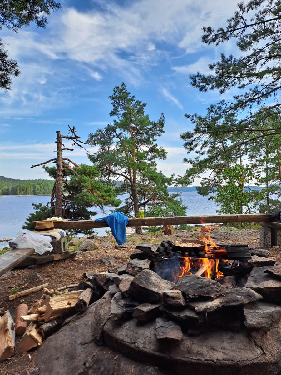 Am fünften Tag paddelten wir etwa 15 km weiter und suchten uns an einer kleinen Insel an der breitesten Stelle des Flusses einen Schlafplatz. Der sechste Tag führte uns in Richtung Stora Lee. Dort fanden wir eine schöne Feuerstelle– die Gegend war genauso ruhig und schön wie unten bei Nössemark.