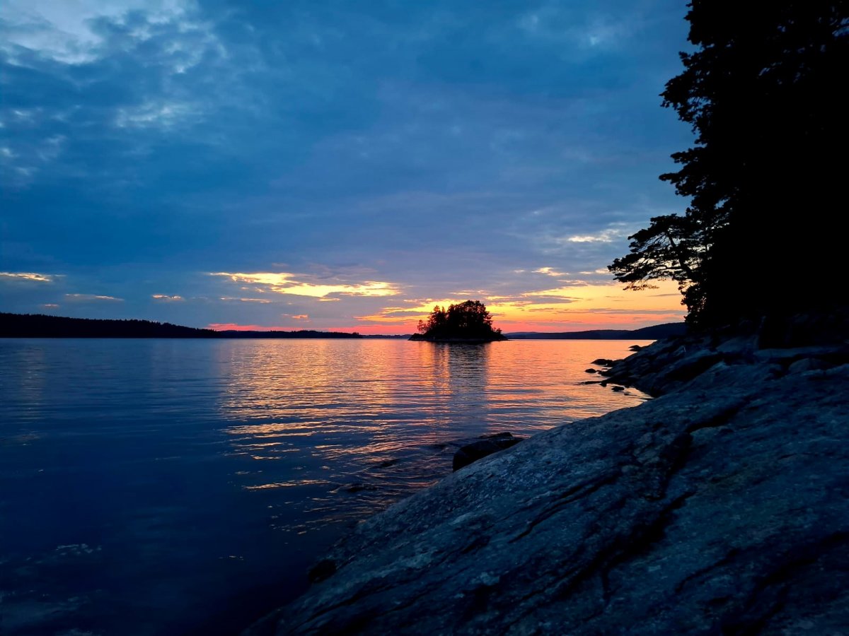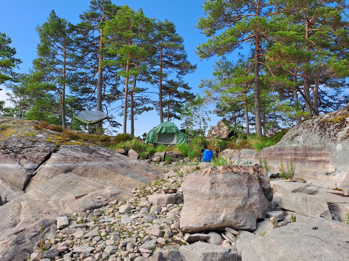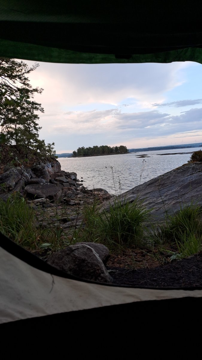 Wir kamen bis zum Anfang der Bucht von Nössemark, aber dort merkten wir schnell: Wenn wir da jetzt reinfahren und die Wellen nicht aufhören, kommen wir womöglich nicht mehr raus. Also entschieden wir uns, umzudrehen – eine anstrengende, aber gute Entscheidung. Das Dano, wo wir gerne hinwollten, war wieder belegt, also übernachteten wir in der Bucht gegenüber der Insel Guppviksön. Insgesamt paddelten wir an dem Tag etwa 30 km.