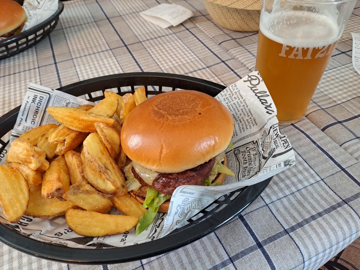 Tag 7 nutzten wir für den Rückweg in Richtung Camp. Wir fanden einen netten Platz für unsere letzte Nacht und waren am nächsten Morgen um 9 Uhr mit den Kanus zurück. Nachdem wir alles verstaut hatten, gönnten wir uns endlich das lang geplante Elch-Bier-Erlebnis: ein Elchburger und ein kühles Bier in Lennartsfors. Beides war richtig lecker – nur die Bierpreise sind in Schweden halt etwas gewöhnungsbedürftig.