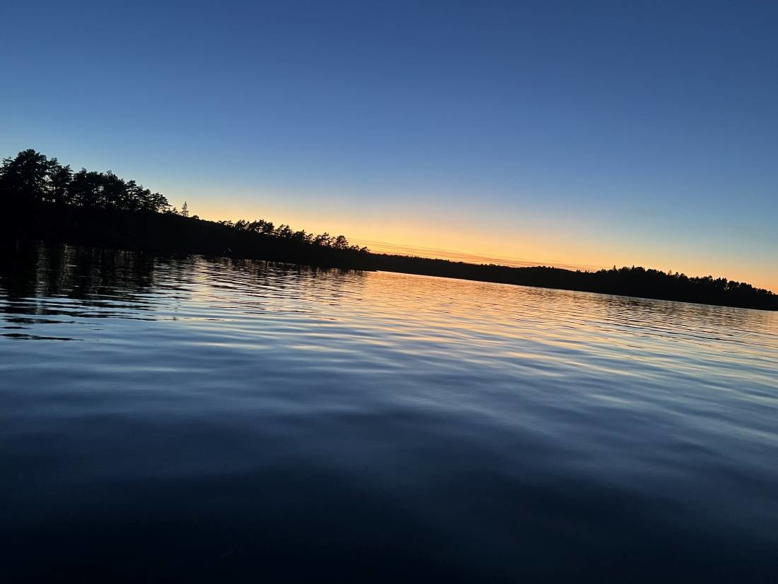 Ich erlebte einen wunderschönen Sonnenuntergang auf dem Foxen, während es ins Camp zurück