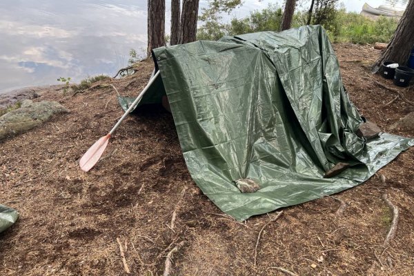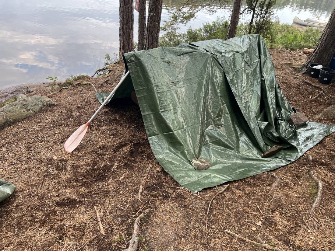 Camp. Da am Steg kein Platz für unsere sieben Kanus war, legten wir am Strand neben dem Steg an