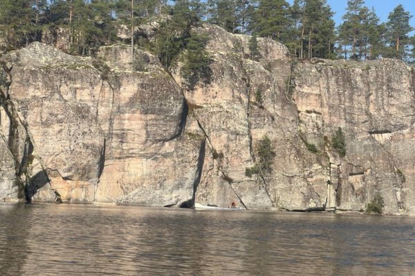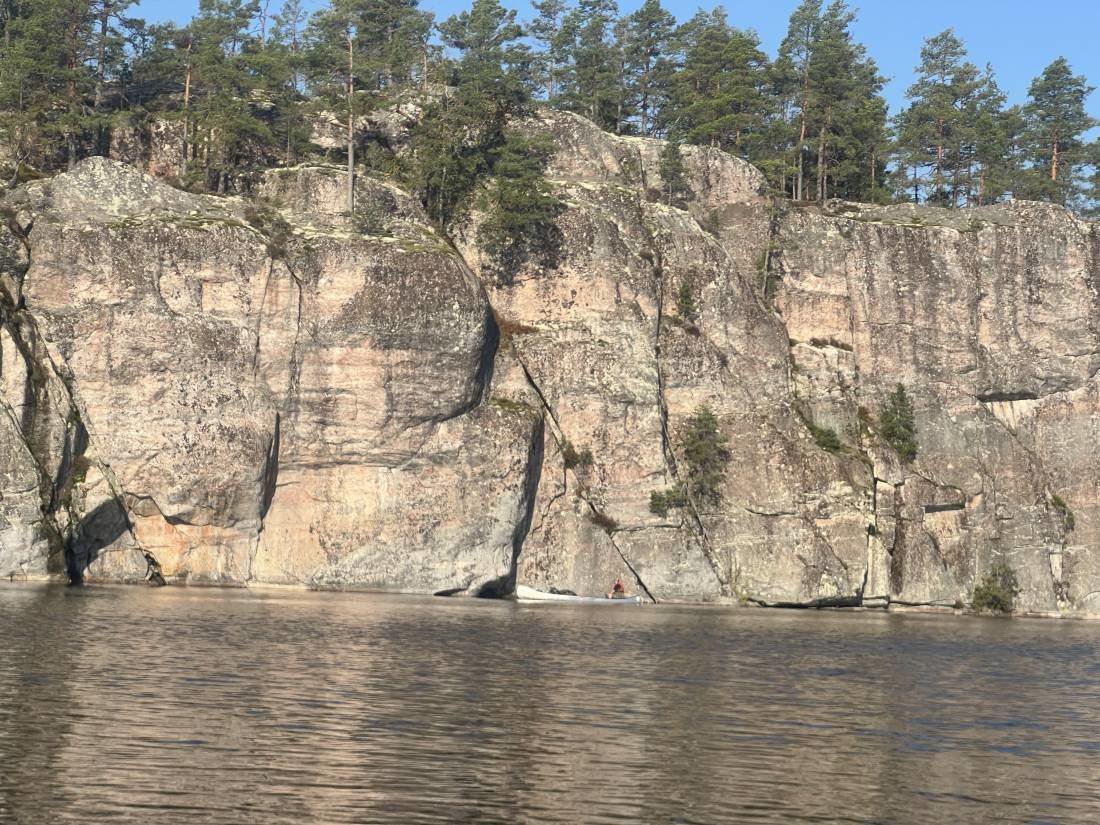an der Felswand gegenüber unseres Rastplatzes entlang den Nedre Blomsjön gen Süden Richtung