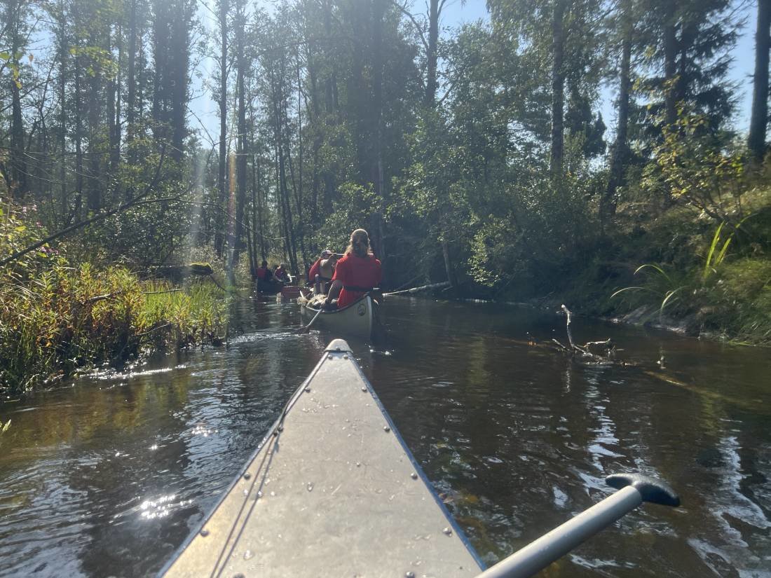 dann ein allerletztes Mal in die Kanus auf den Weg nach Lennartsfors und die Umtrage. Unsere vier