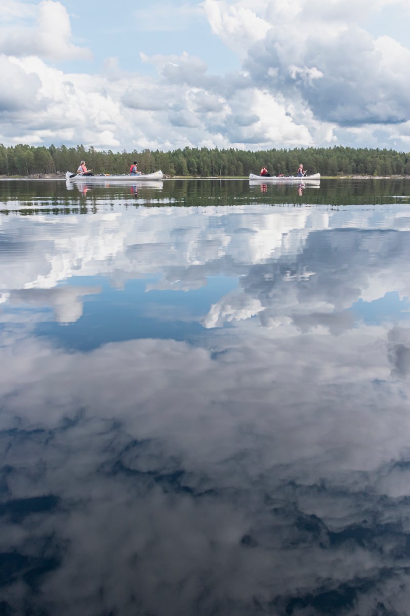 Nach einer ruhigen und erholsamen Nacht ging es weiter Richtung Norden. Der See war ruhig, die Sonne schien und wir kamen gut voran. Schweden zeigte sich von seiner Schokoladenseite, oder wie es einer unserer Gruppe treffend formulierte „Schweden nimmt, Schweden gibt…“