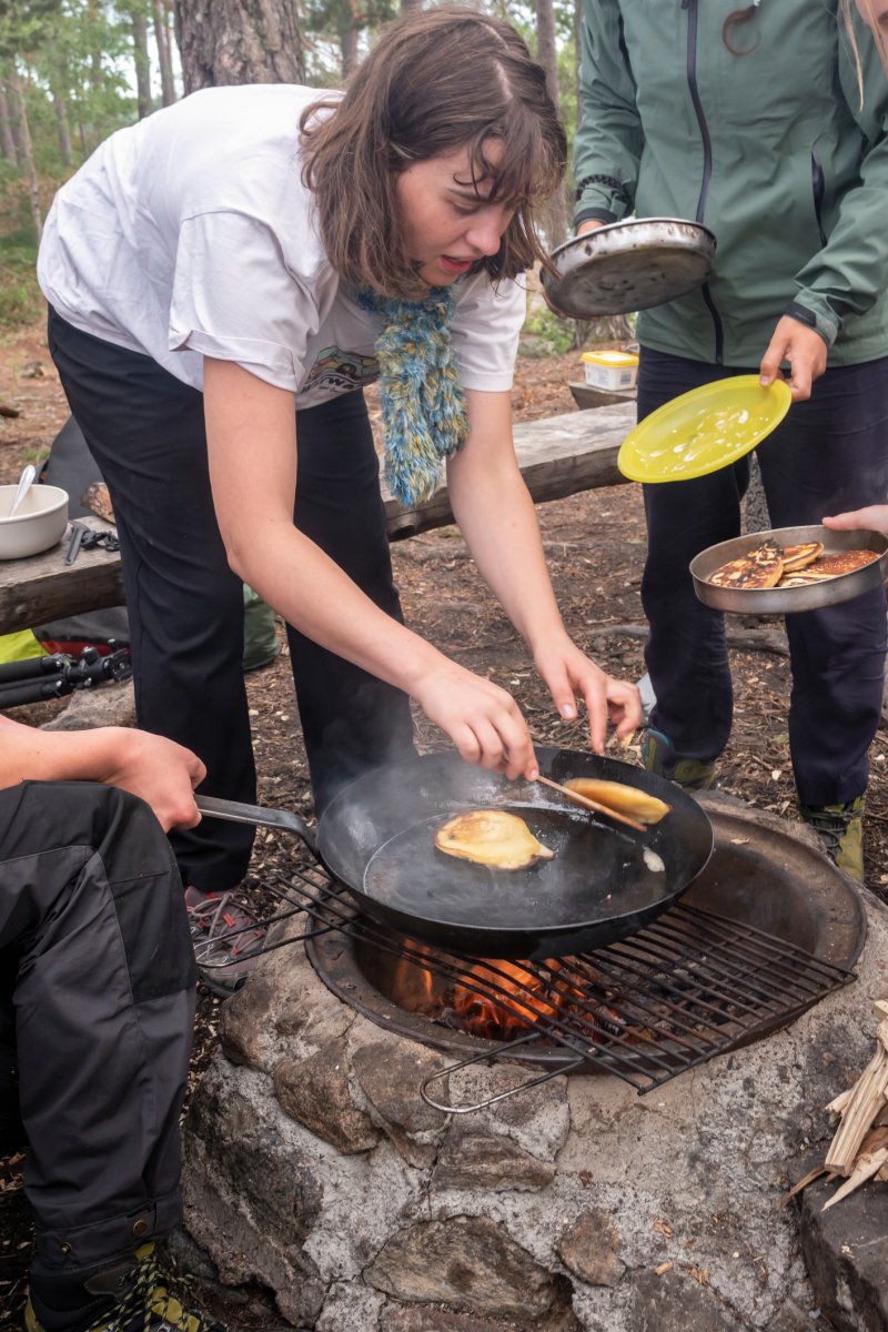 Am vorletzten Morgen gingen wir es gemütlich an und machten uns Pancakes mit frisch gesammelten Blaubeeren und viel Nutella. Alle warteten gierig darauf, dass die endlich fertig sind.