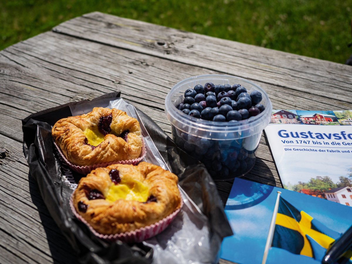 Zu Fuß gingen wir am Steinbruch durch den Wald nach Bengtsfors um dort im ICA unsere Zimtschnecke (mit Pistazie) zu kaufen. Lecker, einfach nur lecker. Das ist für uns Schweden…