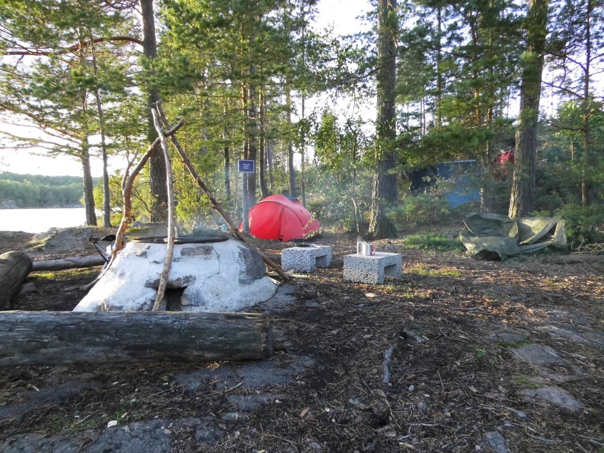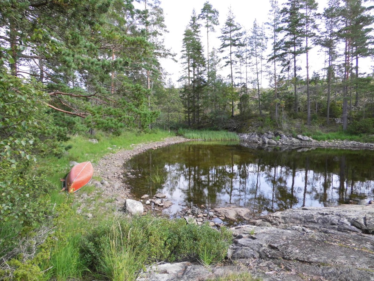 Am 22. August 2014 hieß es für meinen Freund und mich: Warmes Bett und Dusche ade – hallo Wildnis! Unser erster Schwedenurlaub stand bevor. Eigentlich wollten wir diesen auf eigene Faust machen, aber mangels Erfahrung mit Outdoor-Urlauben wie diesem wollten wir die Sache doch lieber in die Hände erfahrener Leute legen. Und so landeten wir bei Scandtrack! Die Hinfahrt war, wie 18-stündige Busreisen eben so sind: anstrengend und relativ schlaflos. Aber die Stimmung war gut, der Busfahrer lustig und das mitgebrachte Lunchpaket riesig. So ließ es sich gut aushalten! Etwas müde wurde man mit der Zeit zwar, aber die Vorfreude hielt uns wach. Noch konnten wir uns trotz Einführungsvideo gar nicht vorstellen, wie so eine Woche in der Wildnis aussehen würde. Würden wir überhaupt unser Camp finden? Was würden wir tun, wenn es nur regnete? Würde das Essen halbwegs schmackhaft oder die ganze Tour eher ein Diättrip werden? Und gab es auch wirklich keine gefährlichen Tiere dort? All das ging uns durch den Kopf, bis dann endlich Lennartsfors auf den Schildern stand. Von dort aus war es auch gar nicht mehr weit bis zum Basiscamp. Da ging dann das Gewusel los. Wer muss wo hin? Haben wir auch alle Unterlagen beisammen? Sind wir überhaupt im richtigen Camp…? Ja, wenigstens das war relativ schnell klar. Nach einiger Verwirrung erreichten wir dann auch unseren Bestimmungsort und dort, gestärkt von einer letzten warmen Dusche, ging es dann ans Abholen der Ausrüstung. Wegen des eigenen Rastplatzes bekamen wir zwei Säcke Feuerholz extra – vier insgesamt. Dazu die schwere Lebensmitteltonne, der Eimer mit frischem Obst und Gemüse, die Werkzeugkiste und unsere beiden Rucksäcke. Einmal vor dem Kanu stehend kam da schnell die Frage auf: Wie um Himmels Willen soll das alles in dieses eine Boot passen?! Aber Wunder gibt es immer wieder, und es passte alles hinein, uns eingeschlossen. Ziemlich schwer beladen tuckerten wir los, zunächst etwas unbeholfen herumpaddelnd, aber bald waren wir ein gutes Team. Außer ein paar kleinen Schauern hatten wir auch schönes Wetter und so erreichten wir dann sogar halbwegs trocken unsere kleine Insel „Tullön“. Ein passender Platz für unser Zelt war schnell gefunden – es gab nämlich nicht allzu viele Möglichkeiten. Auch dort, wo wir unser kleines, rotes Zuhause für die nächste Woche dann aufstellten, machten ein paar dicke Wurzeln das Schlafen zum Abenteuer. Aber das war eben Wildnis, und genau das wollten wir ja. So ließen wir uns unsere erste Outdoor-Mahlzeit am Lagerfeuer schmecken, genossen die Aussicht und das Gefühl, angekommen zu sein. Man hatte tatsächlich das Gefühl, man sei auf einer einsamen Insel – sehr romantisch! Mit diesem Gefühl schliefen wir dann auch bald ein.