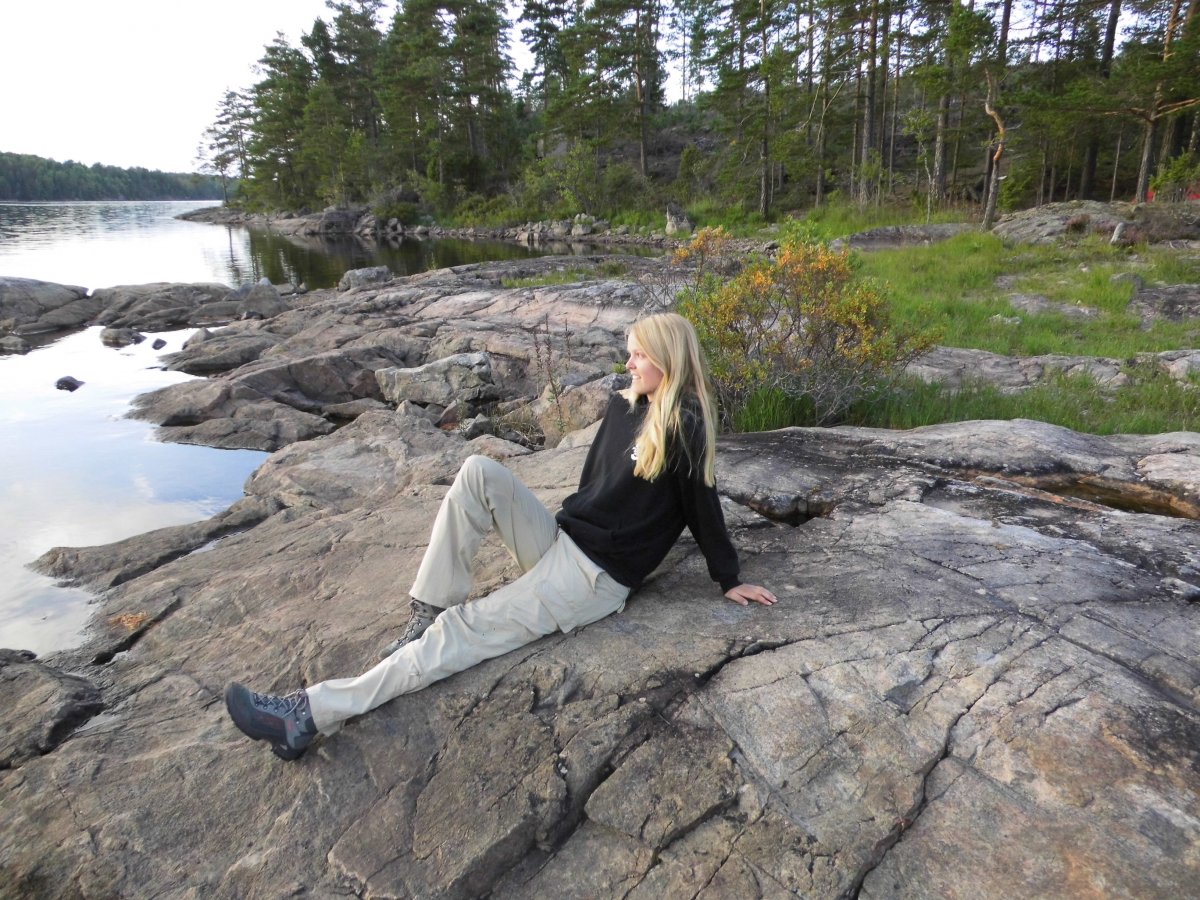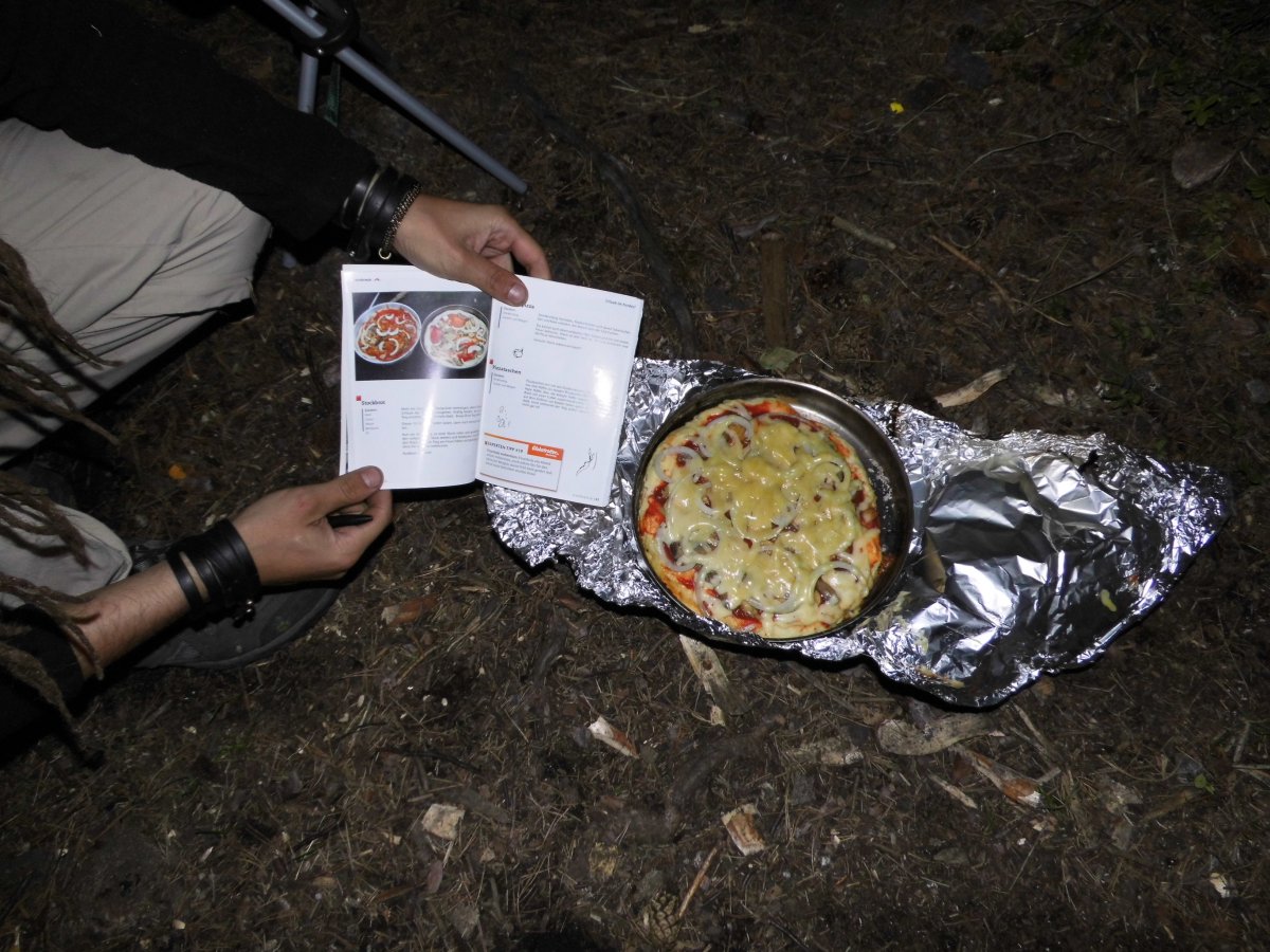 Nach den ersten Schauern hatten wir den Rest der Woche wunderbaren Sonnenschein. Ob Angeln, Kochen, Schnitzen oder kleine Ausflüge in die Umgebung – bei diesem Wetter machte einfach alles Spaß. Wir haben sogar selbst eine Angel aus Stock und Draht gebaut. Gefangen haben wir zwar nichts, aber lustig war es allemal. Einmal waren wir wandern in Lennartsfors, dem kleinen Dorf in der Nähe des Basiscamps. Der Weg dorthin verlief sehr idyllisch durch einen Wald mit einem kleinem Bach und Unmengen an Pilzen. Das Dorf selbst war klein und verschlafen, das einzige Café hatte geschlossen. Aber dafür hatten wir ja genug Proviant dabei. Belohnung für die Strecke war dann selbstgebackene Outdoor-Pizza! Die zu backen funktionierte wirklich besser als erwartet. Einziger Tipp fürs nächste Mal: Alufolie dicht verschließen, damit keine Asche hineingelangt! Eine andere Tour brachte uns im Kanu an die norwegische Grenze. Die war von unserer Insel aus gut erreichbar und bei dem Traumwetter ein schönes Ziel. Am meisten beeindruckt hat uns allerdings nicht der Grenzstein, sondern die atemberaubende Stille auf dem Rückweg. Als einmal ein Rabe an uns vorbeiflog, konnte man die Flügelschläge und seine Rufe über den ganzen See hinweg hören. So schön die Zeit auf der Insel war, so schnell verging sie auch. Den letzten Tag gingen wir ganz entspannt an, genossen mit ein bisschen Wehmut noch ein letztes Mal die Aussicht und die Natur um uns herum und dann ging es auch schon bald zurück ins Camp. Das war dank eines plötzlichen Sturms ganz schön mühselig, aber schließlich hatten wir es doch geschafft und kamen müde und glücklich an. Nach der Abgabe der Ausrüstung und einer kleinen Stärkung sowie der ersten warmen Dusche seit einer Woche stiegen wir abends in den Bus und wurden sicher und mit vielen Erinnerungen im Gepäck zurück nach Deutschland gebracht. Danke Scandtrack, für diese unvergessliche Zeit! Wir kommen auf jeden Fall wieder!