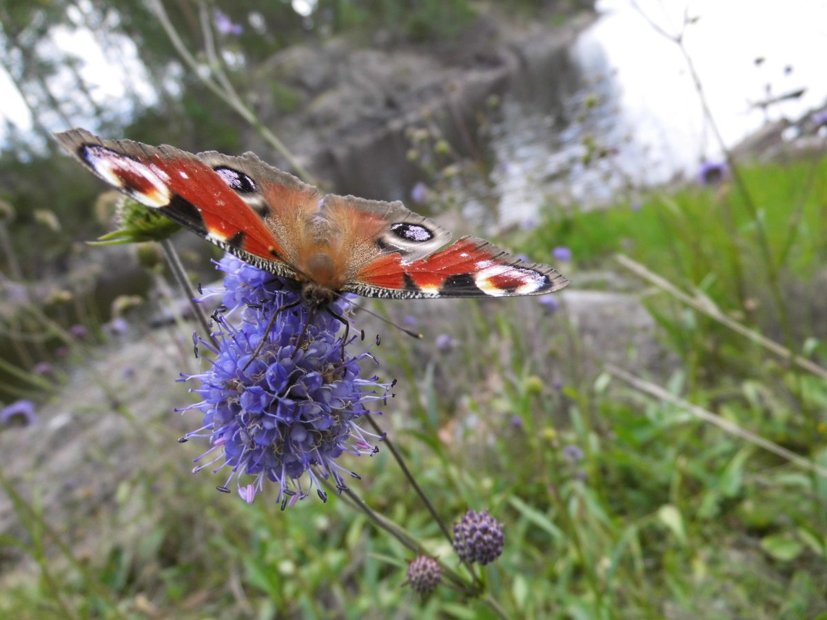 Der zweite Tag auf der Insel begann mit Regen, doch wir hatten ja das Zelt, in das wir uns verkrümeln konnten. Wirklich schön, so ein Zusammensein mal ganz ohne Technik. Als der Himmel sich lichtete, startete mein Freund die ersten Angelversuche, während ich die Insel näher erkundete. Selbst auf dieser begrenzten Fläche gab es unglaublich viele verschiedene Pflanzen und kleine Tiere, zum Beispiel zahlreiche Schmetterlinge, die täglich um uns herum tanzten. Sogar einen Hasen traf ich an – der schien jedoch eher schüchtern zu sein und verschwand gleich wieder im Unterholz. Auch Pilze waren in Massen zu finden, allerdings hatten wir leider versäumt, uns ein Bestimmungsbuch mitzunehmen und so haben wir lieber keine Experimente gemacht. Für nächstes Mal steht das allerdings ganz oben auf der Checkliste! Nach dieser Erkundungstour gönnte ich mir erstmal ein erfrischendes Bad im See. Das tat gut!