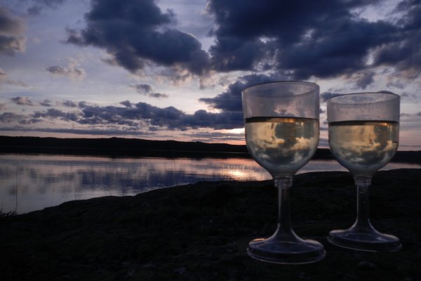 Immer dicht am Ostufer entlang, wir wollten den Platz ja nicht verpassen, zog sich die Strecke ganz schön. Zwischendurch kamen wir sogar an einem kleinen Wasserfall vorbei. Ansonsten waren dort nur Felswände, wo es keine Möglichkeiten gab, das Zelt auf zu bauen, Dann haben wir ihn aber doch gefunden. Versteckt in einer kleinen Piratenbucht ein schöner wilder Zeltplatz. Wir bauten unser Zelt auf und erkundeten die Gegend. Es führte ein kleiner Weg auf einen Felsen nach oben. Von dort hatte man eine traumhafte Aussicht auf den Stora Le. Wir verbrachten den ganzen Nachmittag dort oben, lasen in unseren Büchern, knabberten die Nüsse aus der Verpflegungstonne und ließen uns die Sonne auf den Pelz brennen. Abends kochten wir Kartoffeln, ließen diese abkühlen um Kartoffelsalat zuzubereiten. Dazu gab es Bohnen, für Andi den Jägerbraten und für mich den Hering. Als die Sonne untergegangen war und wir am Lagerfeuer saßen, abgeschirmt in unserer Bucht, schwirrten plötzlich einige Fledermäuse direkt vor uns auf dem Wasser ihre Kreise. Ein schöner Abschluss des Tages.