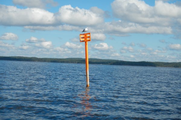 Auf Tröllön kurz halt gemacht, den Müll entsorgt, dann weiter in den Stora Le. Es dauerte nicht lange, wir kamen schnell voran weil das Wasser spiegelglatt war, und wir erreichten Dano 7. Doch auf der Insel sah es aus wie auf Mallorca. Etliche Leute aalten sich in der Sonne, egal ob Ost-, Süd- oder Westseite. Also ging es für uns weiter Richtung Ed nach Süden. Andi hatte in einem Buch etwas von einem wunderschönen wilden Zeltplatz, ca. 3 km südlich von Gruppviksön, gelesen. Das war nun unser neues Ziel.
