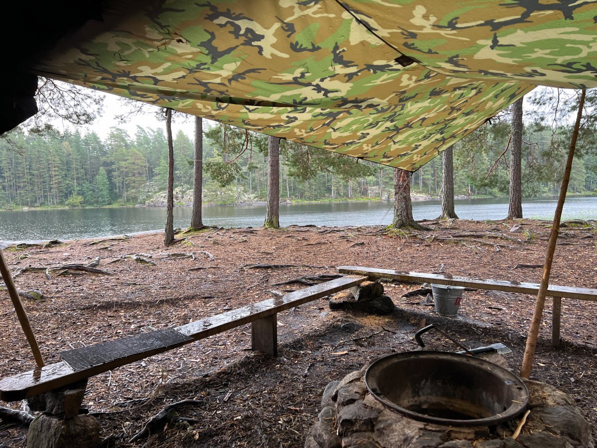 Der dritte Tag unserer Reise war geprägt vom schlechten Wetter. Der Regen hörte nicht auf, und die Wellen auf dem See machten es uns unmöglich, weiterzupaddeln. Wir entschieden uns, einen weiteren Tag auf Dano 15 zu bleiben und verbrachten die Zeit unter einem improvisierten Tarp-Aufbau an der Feuerstelle. Auch wenn wir den Tag nicht auf dem Wasser verbringen konnten, genossen wir die Ruhe und die Nähe zur Natur. Es war ein erholsamer Tag, an dem wir neue Kraft schöpften.