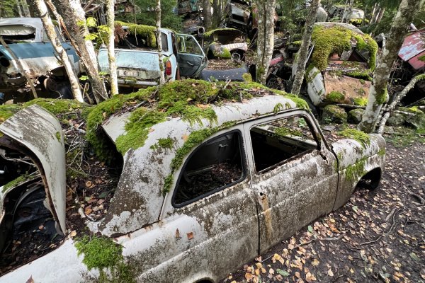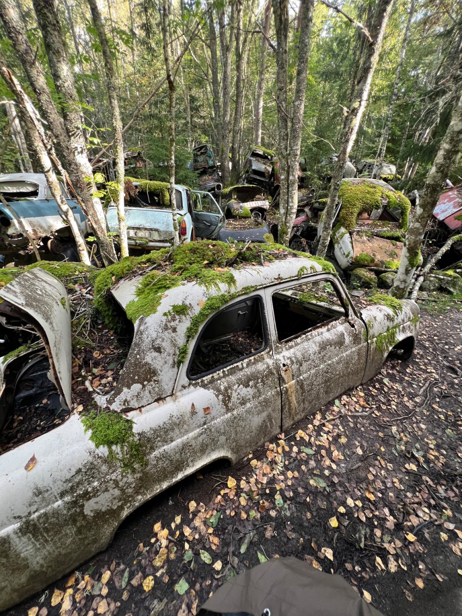 Trotz dieses kleinen Zwischenfalls kamen wir schnell voran und peilten Dano 18 für die letzte Nacht an. Dort trafen wir auf eine Familie, die gerade ihre drei Kanus belud, und sie übergab uns den Lagerplatz. Die Familie erzählte uns von einem "Autofriedhof", der etwa 45 Minuten zu Fuß entfernt war. Nachdem wir unser Lager bezogen hatten, beschlossen wir, diesen seltsamen Ort zu erkunden. Da der Weg jedoch sehr matschig war und ich nur Wasserschuhe trug, drehte ich nach einer halben Stunde um. Valentin setzte den Weg fort, um Fotos zu machen, während ich zum Lager zurückkehrte, Feuerholz sammelte und das Lagerfeuer entzündete.