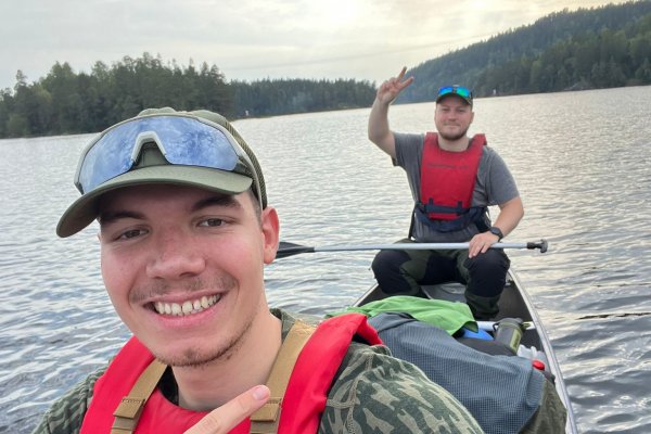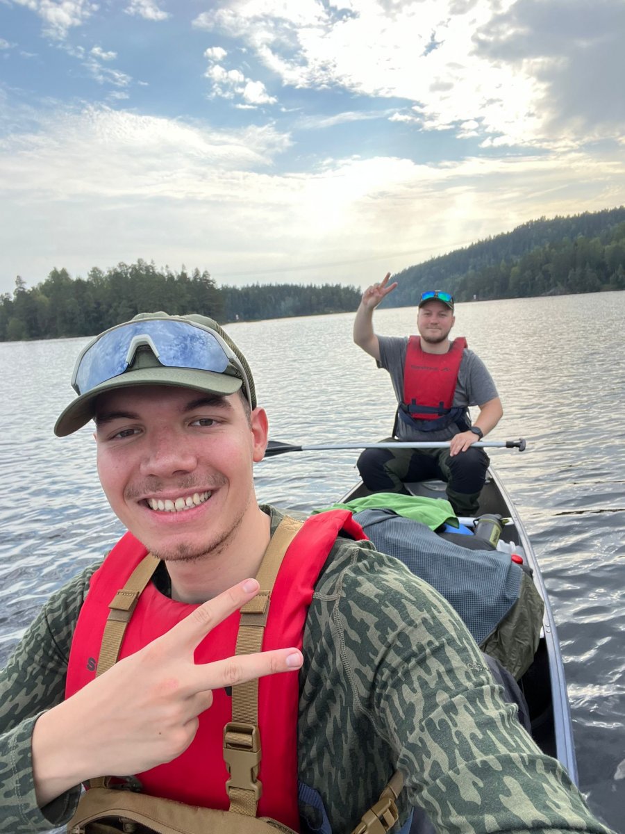Am nächsten Tag, Samstag um etwa 13 Uhr, erreichten wir das Basislager in Schweden. Die lange Fahrt war anstrengend, doch als wir den dichten Wald und die frische, klare Luft wahrnahmen, verflog jede Müdigkeit. Jens empfing uns herzlich und wir zogen über den „Abenteuerpfad“ zur Ausgabe der Ausrüstung. Dort erhielten wir unser Kanu, Paddel, Schwimmwesten und all die wichtigen Utensilien für die kommenden Tage. Mit einem kleinen „Lifehack“, den wir uns schnell aneigneten – Toilettenpapierrollen in kleine Mülltüten verpacken, um sie vor dem unvermeidlichen Spritzwasser zu schützen – starteten wir unsere Tour.