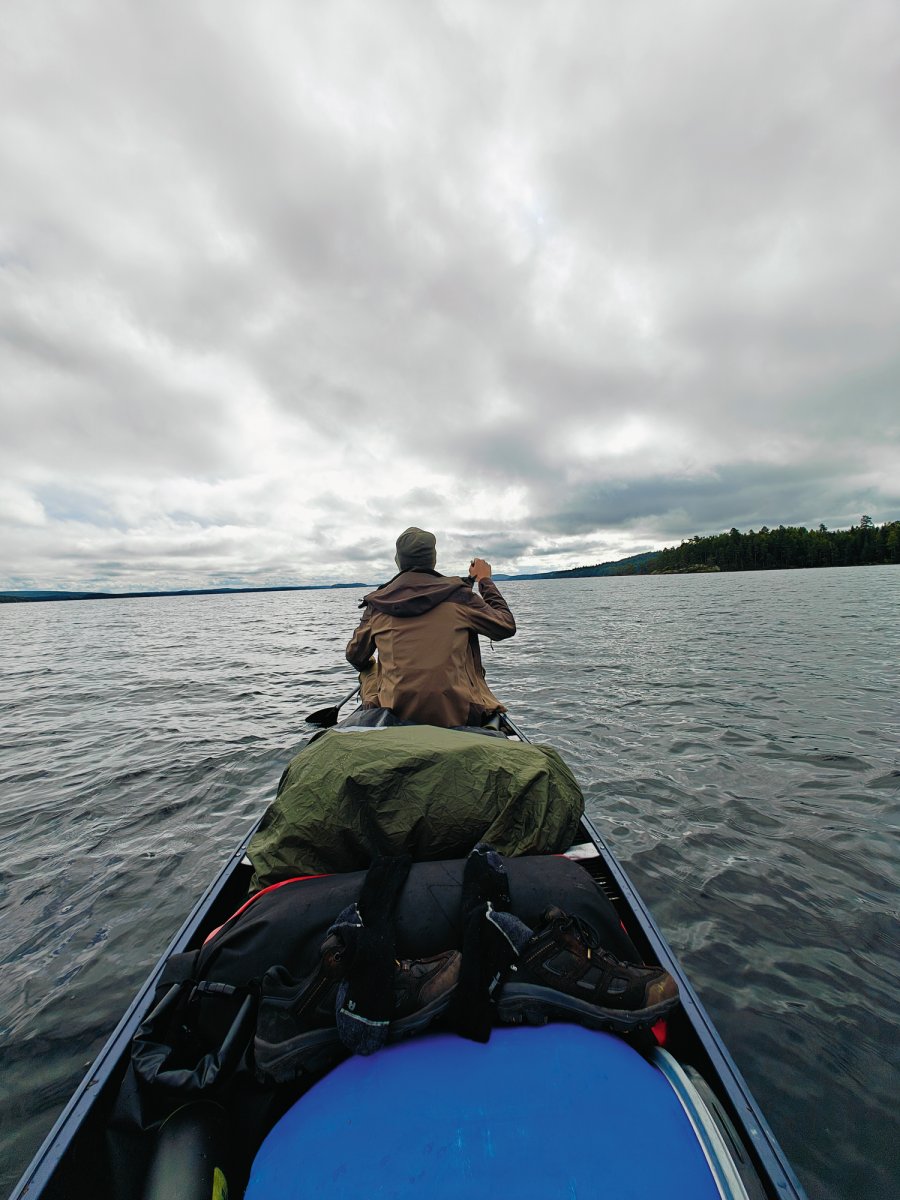 Am vierten Tag klarte der Himmel langsam auf, und der Regen ließ nach. Nach einem kräftigen Frühstück verabschiedeten wir uns von Björn und machten uns auf den Weg Richtung Norden. Doch das Wetter spielte weiterhin nicht ganz mit. Der Wellengang machte uns das Paddeln schwer, und nach wortwörtlichen Höhen und Tiefen entschieden wir uns, das Kanu an einer Stelle bei der Ortschaft Viker umzutragen.