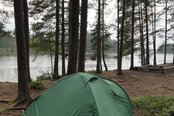 Im Schuppen zogen wir unsere durchnässten Klamotten aus, wrangen sie aus und schlüpften in trockene Sachen, die wir in unseren wasserdichten Rucksäcken mitgeführt hatten. Nach etwa einer Stunde ließ der Sturm nach, und wir entschieden, die Fahrt fortzusetzen. Wir paddelten unter der blauen Brücke hindurch, passierten eine Lachsfarm und steuerten schließlich Dano 20 an. Gegen 15:30 Uhr erreichten wir die Insel und waren beeindruckt von der perfekten Lage des Lagers.