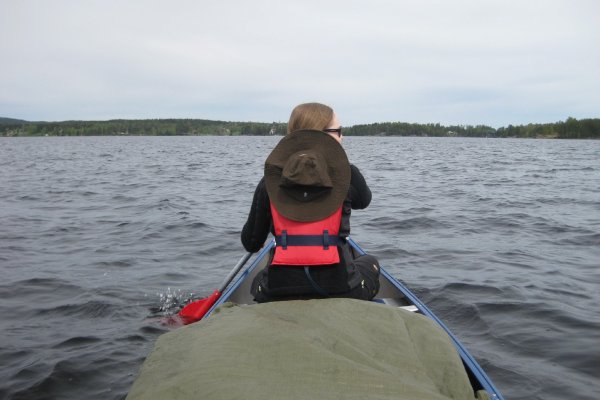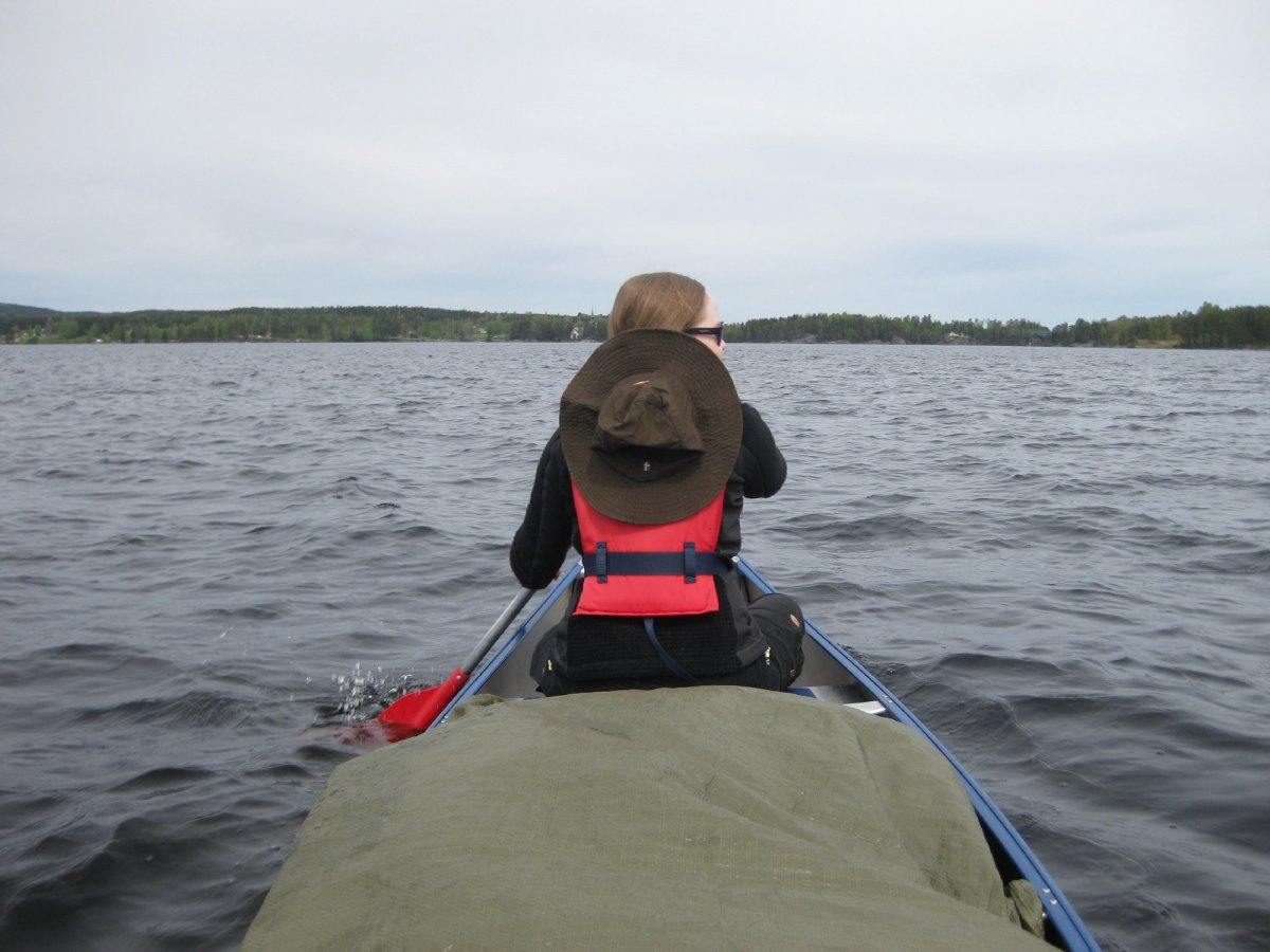 Ein Kanu auf dem Weg nach Guppviksön kam uns auf den ersten Metern entgegen und die paddelnden Damen frohlockten über die Aussicht auf eine trockene Schutzhütte, während wir jetzt ein gutes Stück offene See vor uns hatten.