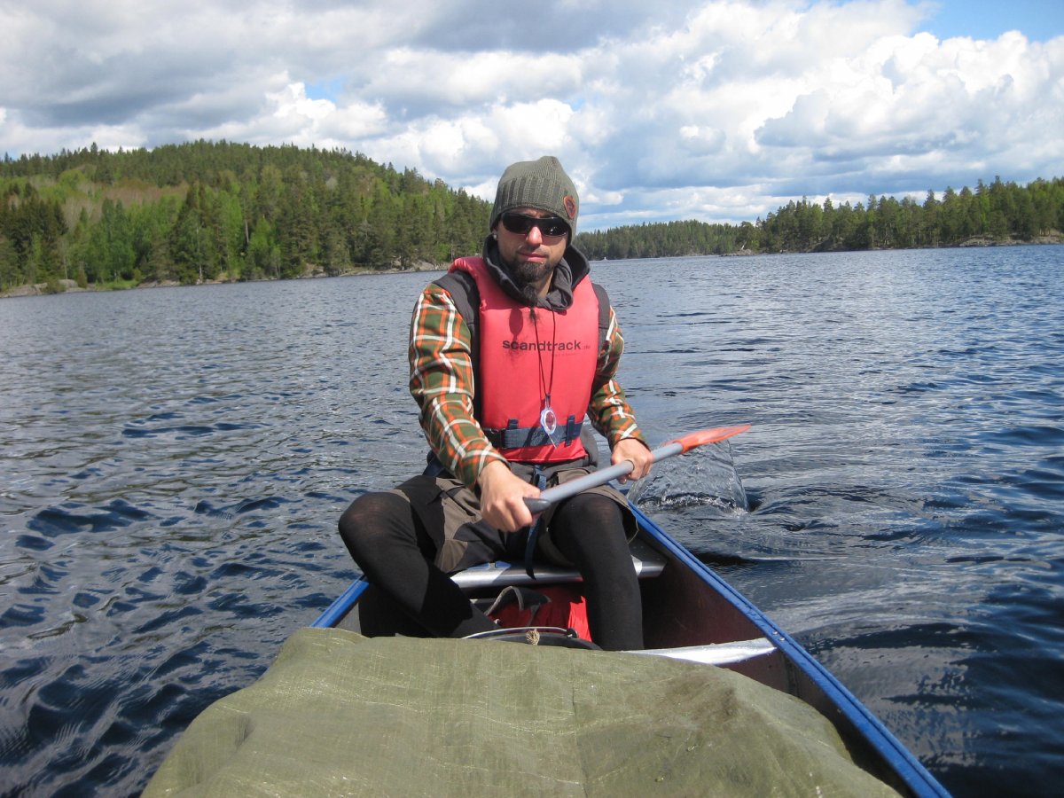 Die Wolken am Himmel wirkten regenschwer, aber frohen Mutes machten wir uns wieder auf den Weg und schmunzelten über den eigentlichen Höhepunkt auf Bärön, nämlich den frechen Raben, welcher, kurz nachdem wir unser Kanu verließen um uns die Insel anzuschauen, ins Kanu sprang und zielstrebig die Studentenfutterdose auf pickte. Am Abend streute ich ihm als Belohnung für seinen Wagemut ein paar Nüsse auf einen Felsblock am Rande der Insel. Als wir nun also die Insel verließen, waren die Nüsse schon lange fort.