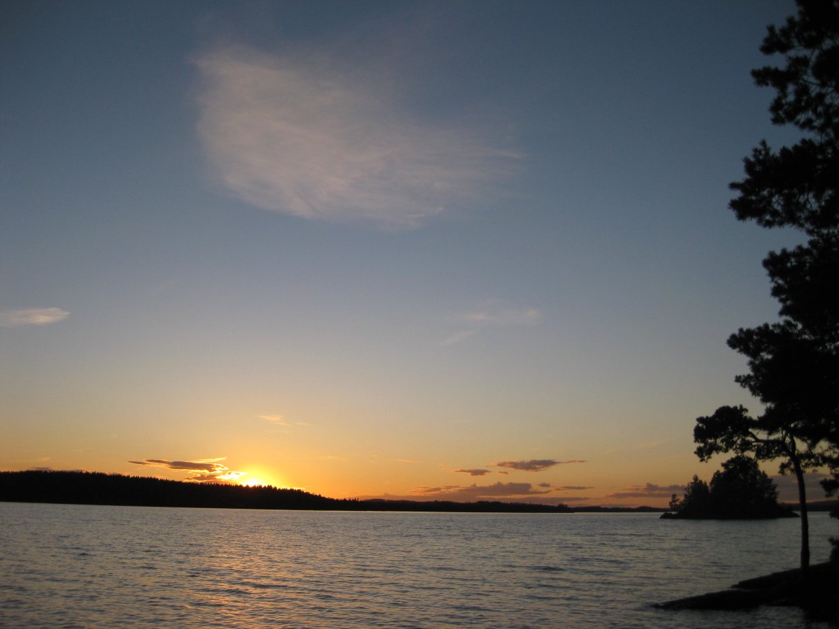 Bereits am frühen Abend hatte Hannah in den verzweigten Heidelbeersträuchern die Spuren (in Dungform) eines Elches entdeckt und mit gespitzten Ohren verschwanden wir in die Schlafsäcke. Wie zu erwarten war, erschien in der Nacht allerdings kein einziges Wildtier, denn in Schweden sind die meisten Wildtiere noch scheu und meiden die Rastplätze. Trotz allem war unser Schlaf unruhig und wir mussten uns erst an die nächtliche Geräuschkulisse gewöhnen. Richtige Dunkelheit würde sich während unserer Reise aber nie einstellen und nur silbriger Dämmerschimmer markierte die Stunden der Nacht.
