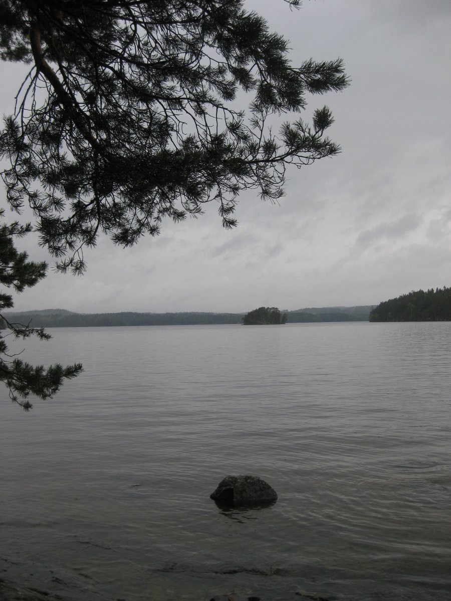 Zweimal stoppten kurz andere Kanuten auf Trollön, um sich nach einem freien Lager umzusehen. Unverrichteter Dinge zogen sie dann wieder ab. Ein Kanut bemängelte die Missachtung des „Jedermannsrechts“ durch andere Reisende, die wegen des unangenehmen Wetters einfach auf ihren Lagerplätzen blieben. Das „Jedermannsrecht“ sieht allerdings vor, einen Lagerplatz nur für eine Nacht zu nutzen und dann weiterzuziehen. Diejenigen Kanufahrer, wie auch wir, die sich an dieses Gebot hielten, hatten so manches Mal das Nachsehen und mussten bei schlechtem Wetter immer weitere Strecken zurücklegen und Rastplatz nach Rastplatz absuchen. Wenn sich alle an das „Jedermannsrecht“ hielten, wäre eine passende Rotation der vorhandenen Rastplätze gut möglich. Diesem unfairen Verhalten sollten wir auch am nächsten Tag wieder begegnen.
