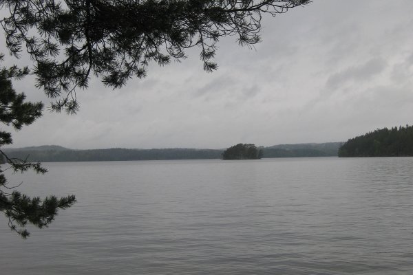 So verließen wir unseren letzten Rastplatz und den Schutz seiner stillen Bucht, direkt hinein ins Unwetter. Unser eigentlicher Plan scheiterte schon nach wenigen Metern. Wuchtig liefen die Wellen von Südost auf die kleine Bucht zu und brachen sich zu beiden Seiten an Uferlinie und der vorgelagerten Insel. Die Brechung der Wellen erzeugte einen durcheinander wirbelnden Hexenkessel aus Wasser, welches sofort nach unserem Kanu griff. Wasser spritzte an der flachen Bordwand hinauf, während wir uns mit kräftigen Paddelschlägen vorwärts in Richtung freie Wasserfläche zogen. Ein Blick ans westliche Ufer verriet, dass wir keine Chance haben würden, daran entlang zu paddeln. Die Wellen brachen sich mit großer Kraft an den Felsen und schäumten über verdeckte Untiefen am Rande des Ufers. Das und der ständige Einschlag der seitlich kommenden Wellen hätten womöglich ein bedrohliches Kentern zur Folge gehabt. Wir waren zwar mit Schwimmwesten ausgestattet, aber vor allem die niedrige Wassertemperatur hätte für ernste Probleme sorgen können. Später kam noch die exponierte Lage auf dem offen See, kilometerweit ab von jeglichem Festland, hinzu.
