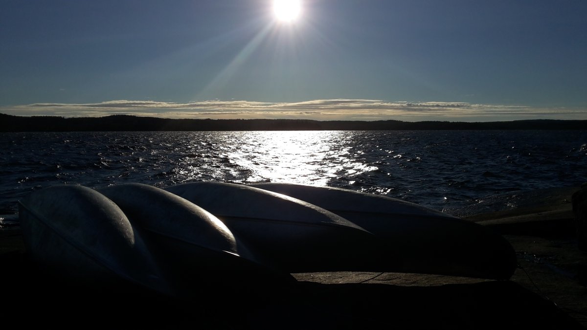 Angekommen im Camp wurden die Gruppen dann verschiedenen Plätzen zugewiesen, man konnte sich die Beine vertreten, organisatorisch noch ein paar Fragen stellen oder Anglerkarten kaufen etc. und am Ufer des Stora Börs bei (nun ja) „ungutem“ Wetter haben wir dann auch ne kurze Einweisung und das „Überlebenspaket“ erhalten. Man hat gemerkt wie euphorisch der Blutdruck wieder anstieg…jetz geht’s los…ab in die Wildnis…wir konnten alle wirklich nur noch grinsen-trotz Regen!!!!